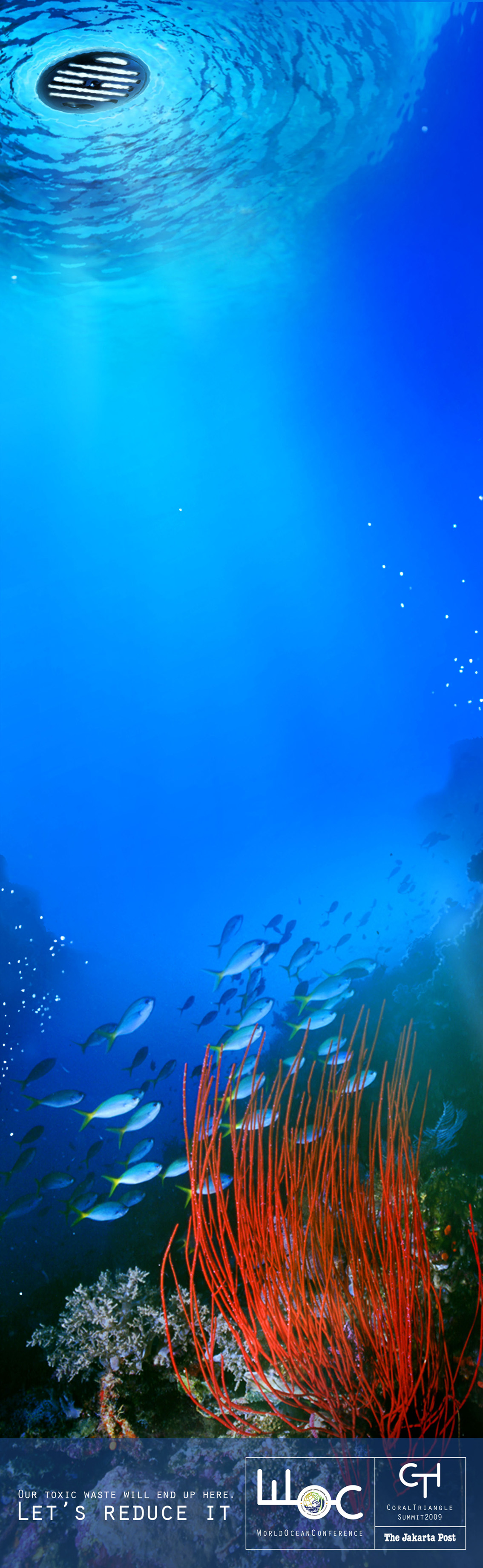 WOC 2009: канализацию и мировой океан ничто не разделяетПризнавая важность океана, морской среды и ресурсов океана для жизни на Земле и ее устойчивого развития, ведущие министерства Индонезии организовали международную выставку и конференцию по мировому океану World Ocean Conference (WOC) 2009, которая пройдет в Манадо, столице и главном городе северной части острова Сулавеси, а также известном центре дайвинга Индонезии.Освещать это событие взялось издательство The Jakarta Post и рекламное агентство Publicis Jakarta, чьи креаторы и разработали данный принт. Слоган: "Наши токсичные отходы попадают в итоге сюда. Давайте сократим наше влияние." Агентство: Publicis Jakarta, Индонезия Фотограф: Marco Widjaja Главный творческий директор: Randy Rinaldi Творческий директор: Afianto Makmun / Roy Sagala Арт-директор: Dimaz Muktiarto/ Iswanda Mardio Копирайтер: Diah Wulansari / Achsa Zenada |