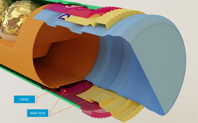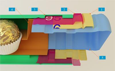 Конфеты помещены в тубус. На торце тубуса расположен замок, препятствующий извлечению конфет.