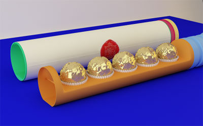 Ниже рассмотрена реализация идеи российского изобретателя Влада Лёвушкина на примере упаковки конфет - традиционного продукта поощрения.