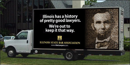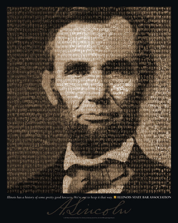 Дизайнеры сложили портрет Линкольна из фото современных политиковРекламная фирма &Wojdyla разработало мозаичную рекламу для Ассоциации адвокатов штата ИллинойсУроженец Иллинойса Авраам Линкольн, также известный как Великий освободитель и Честный Эйб, до политической карьеры имел свою адвокатскую практику и именно поэтому теперь стал "лицом" иллинойских адвокатов. Причем не он один - для создания огромного лика шестнадцатого президента США креативщики использовали мозаику из фотографий более чем 500 других юристов штата, в том числе среди них также "первые люди" США - Хилари Клинтон и Барак Обама. "Иллинойс имеет в своей истории нескольких очень хороших юристов. Мы следуем их путем", - сообщает надпись на грузовиках с мозаикой Линкольна, которые разъезжают по штату. Смешно получится, если машина завязнет в грязи - надпись приобретет несколько саркастический смысл.