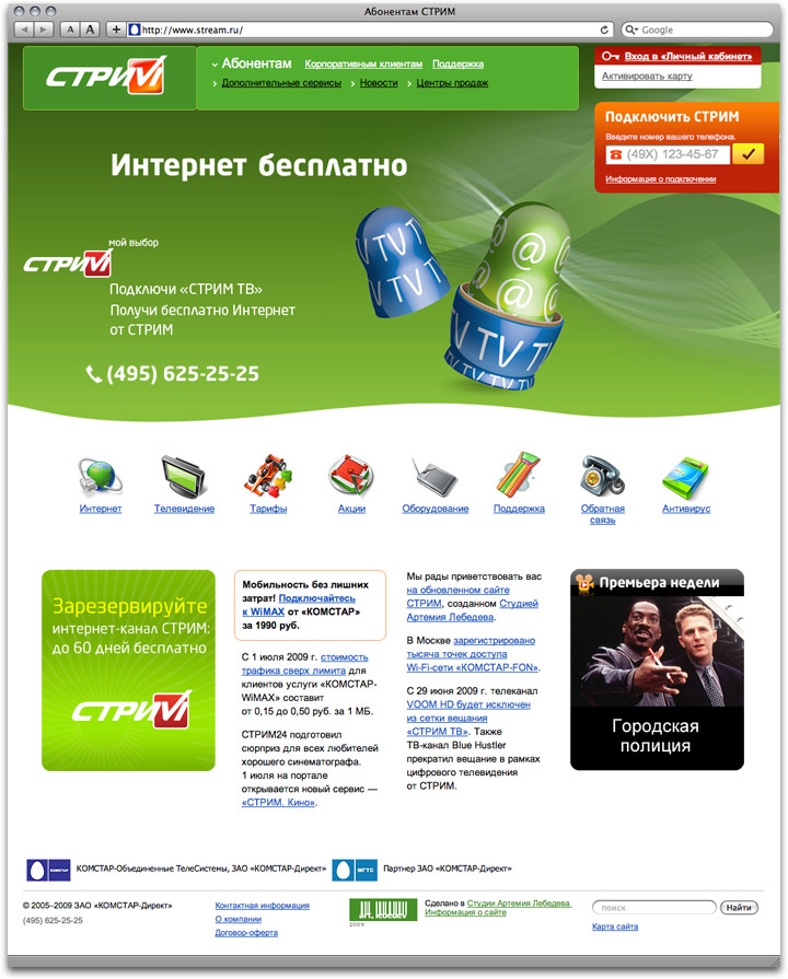 "Стрим" затеял переделку у ЛебедеваСтудии Артемия Лебедева разработала сайт интернет-провайдераСтудия Артемия Лебедева разработала сайт для проекта "Стрим" - www.stream.ru. Sostav.ru обратился за комментариями к Роману Павленко, Digital Creative Group Head агентства G2: "Специально зашел на этот сайт - я просто практик и сразу обращаю внимание на функциональные вещи - я сразу увидел очень большую шапку, она на самом деле не настолько насыщена информативно. Я специально меняю разрешение монитора на 1024/768 -стандартное, которое сейчас является самым популярным на компьютерах пользователей. У меня практически 80 % страницы занимает эта шапка, и под шапкой находятся иконки с названиями основных разделов сайта, подписи к этим иконкам на разрешении 1024/768 выходят за пределы экрана. С одной стороны - это вечная такая тема, что если человеку интересно, что находится на этом сайте, то он прокрутит вниз и посмотрит, а с другой - мы говорим о таком информационном ресурсе, на который человек пришел получить информацию о продукте, о том, что такое "Стрим". И тогда на всю страницу у него какие-то матрешки и не очень содержательное сообщение. Мне это кажется несколько странным. Как мне кажется странным и то, что в 2009 году мы смотрим на этот сайт - и что? Там красиво нарисованные иконки. Причем надо сказать, что их не удалось все выдержать в одной стилистике. Но, помимо красиво нарисованных иконок и огромной шапки, там все-таки, на мой взгляд, должны быть предложены человеку какие-то интересные сервисы - на этом сайте я такого не увидел, поэтому мне не очень понятно, что сделала Студия Артемия Лебедева: нарисовала много красивых иконок или все-таки сделал сайт? Не могу сказать, что у меня отношение негативное или положительно, но после просмотра остается какое-то недоумение". Состав творческой группы: худрук - Артемий Лебедев арт-директор и дизайнер - Рома Воронежский дизайнер - Елена Дронова пиктографисты - Олег Пшеничный, Сергей Рачок технический директор - Владимир Токмаков технолог - Владислав Яковлев кодеры - Иван Шорников, Артем Ткаченко, Денис Хрипков редактор - Александр Носиков менеджеры - Артем Гордин, Ольга Гомзякова |