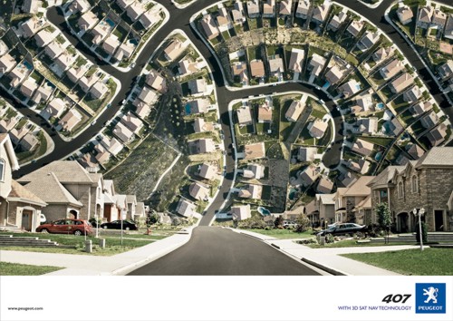 Головокружительная навигация от PeugeotThe Furnace рекламирует систему спутниковой навигации 3D Sat NavДля рекламы навигатора нового Peugeot 407 агентство разработало серию принтов с головокружительной оптической иллюзией. Одного взгляда недостаточно, чтобы разобрать, что же именно изображено на плакатах, но потом становится ясно, что на большей части картинки изображен город с высоты птичьего полета со всеми дорогами, домами и автомобилями. А в самом низу уже представлен вид глазами водителя нового "Пежо 407". Кампания подчеркивает точность и превосходную работу технологии 3D Sat Nav, которой оснащены новые автомобили серии. Состав творческой группы Agency: The Furnace Advertiser: Peugeot Project name: 3D Sat Nav Copywriter: Paul Fenton, Luke Duggan Art director: Paul Fenton, Luke Duggan Photographer: Stock, Marcus Thyer Retouching agency: Cave, Cream |