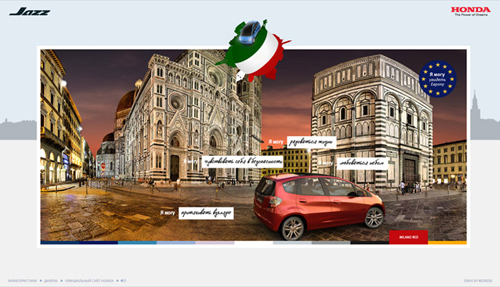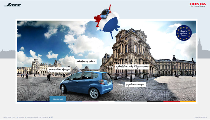 "Я могу" от Red Keds для HondaПромо-сайт автомобиля Honda JazzК появлению автомобиля Honda Jazz нового поколения креативное агентство Red Keds разработало промосайт www.jazzrussia.ru. Показать все достоинства нового автомобиля Red Keds решили с помощью концепции "Я могу". "Я могу доверять своей машине" - безопасность, "Я могу притягивать взгляды" - стильный дизайн, "Я могу ни в чем себя не ограничивать" - экономичность, "Я могу любоваться небом" - панорамная крыша. Одна из таких возможностей - "Я могу увидеть Европу". Посетителю промосайта Honda Jazz предлагается совершить виртуальное путешествие по Европе в режиме реального времени. Стоит только выбрать цвет автомобиля, загрузить свою фотографию и двигаться по маршруту. Во время пребывания в городах Европы пользователю предлагается информация о местных достопримечательностях, гостиницах, ресторанах, а также дополнительный мультимедийный контент, связанный с конкретным городом и автомобилем Honda Jazz. Статус своего путешествия можно проверить при заходе на сайт или с помощью интерактивного баннера в блоге. "Мы попытались создать проект, который был бы не просто интересным, но и полезным, - рассказывает Креативный директор Red Keds Виталий Быков - На сайте можно узнать о достопримечательностях городов Европы и поиграть в виртуальное путешествие. Нам кажется, что это хороший инструмент в построении продолжительных онлайн-коммуникаций с пользователями". Напомним, что "Я могу" также используется брендом "Pepsi" в качестве слогана. Состав творческой группы: Идея: Red Keds Руководитель проекта: Илья Рыжков Арт-директор: Евгений Стройнов Дизайнер: Илья Рыжков Технический дизайнер: Роман Емельянов Иллюстратор: Маша Мясникова Флеш-программист: Азиз Зайнутдинов Серверный программист: Иван Брылев Копирайтер: Илья Петров Motion-дизайнер: Павел Сивальнев Менеджер: Константин Кацев 3D - Алексей Комаров, Сергей Алейников |