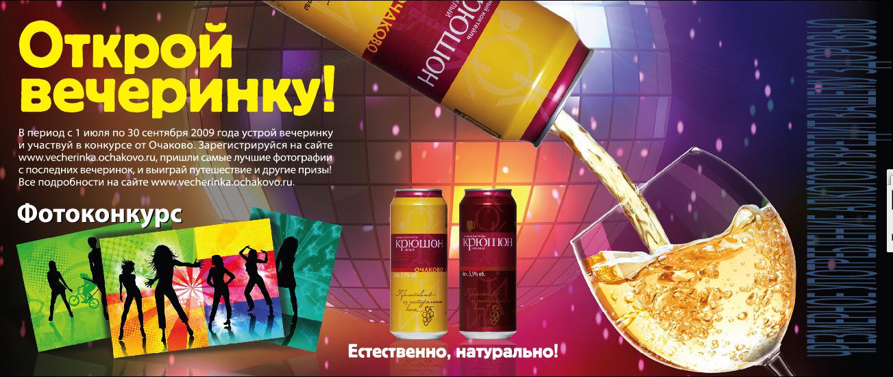 Вечеринка вкуснее с «Очаковским»1 июля 2009 года стартовала акция «Открой вечеринку» в поддержку натуральных винных коктейлей «Крюшон Очаковский белый» и «Крюшон Очаковский красный». Для участия в конкурсе необходимо на промо-сайте компании «Очаково» www.vecherinka.ochakovo.ru разместить фотографию, на которой запечатлена зажигательная вечеринка, проходящая за бокалом легких винных коктейлей «Крюшон Очаковский белый» или «Крюшон Очаковский красный». На сайте будет проходить онлайн-голосование, по итогам которого определятся лучшие фотографии. Ежемесячно авторы работ, набравших наибольшее количество голосов по итогам онлайн- голосования, будут награждаться призами: за первое место – недельным путешествием на двоих, за второе место – фотокамерой, за третье место – музыкальным центром. Акция проходит с 1 июля по 30 сентября 2009 года. |
