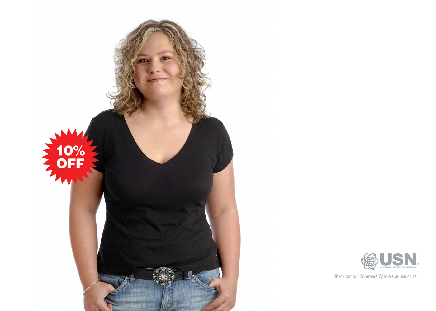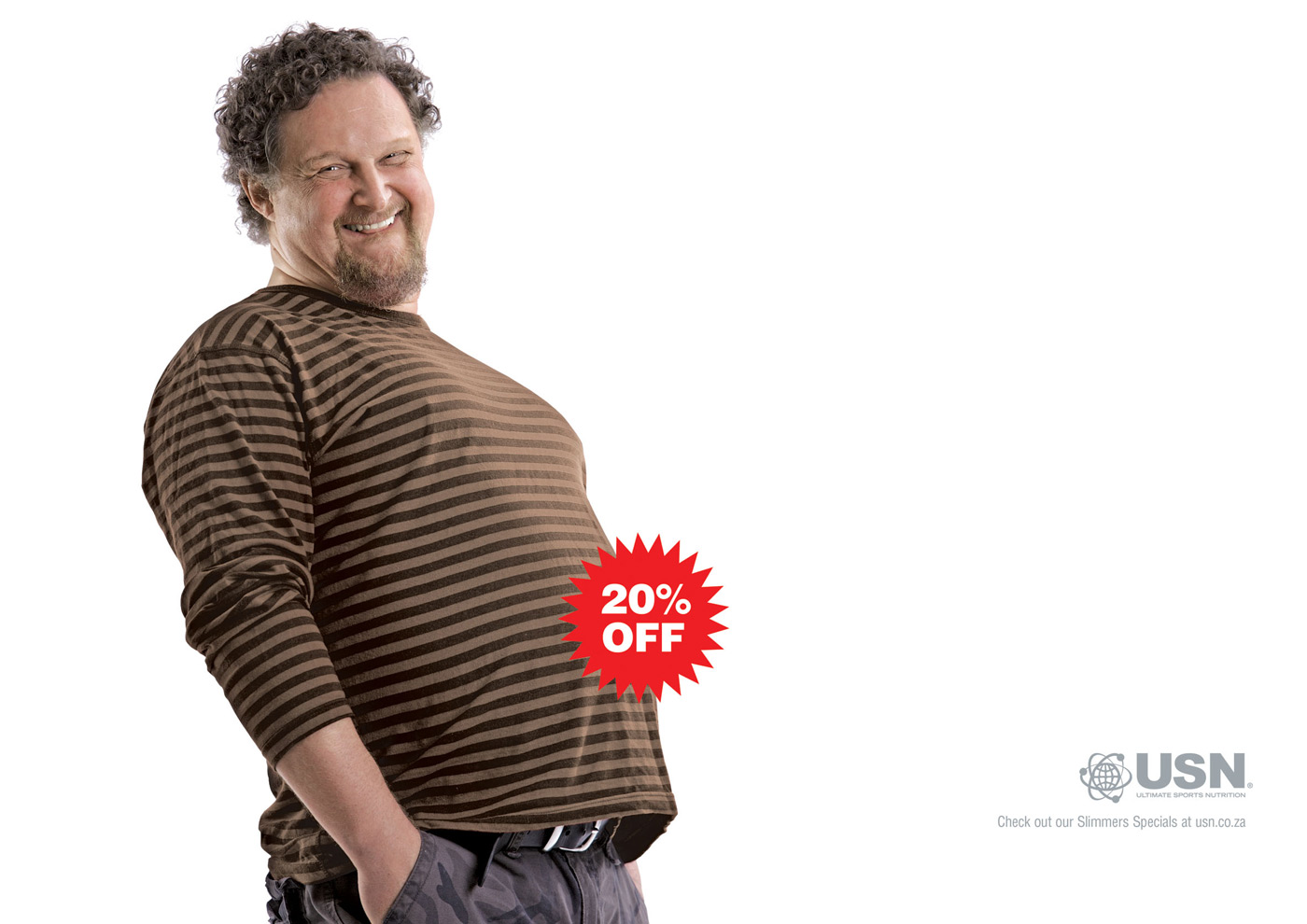 Ultimate Sports Nutrition помогает худеть со вкусомUltimate Sports Nutrition разработали целый ряд пищевых добавок, которые позволяют одновременно и наслаждаться вкусом еды и терять при этом калории. Многие знаменитости уже воспользовались услугами системы - чемпионы по регби, именитые культуристы, победители Tour De France и многие другие известные люди. При этому USN не останавливаются на работе со знаменитостями и стараются быть ближе обычному потребителю. В новой рекламной кампании от Volcano Advertising плакаты привлекают внимание клиента, одновременно обещая и потерю лишних процентов веса и скидку при покупке новых программ USN.Слоган: "Посмотрите наши Спец-диеты на usn.co.za." Advertising Agency: Volcano Advertising, Johannesburg, South Africa Executive Creative Director: Brad Copeman Creative Director: Glenn Jeffery Art Director: Francois Boshoff Copywriter: Tasha Hodgson |