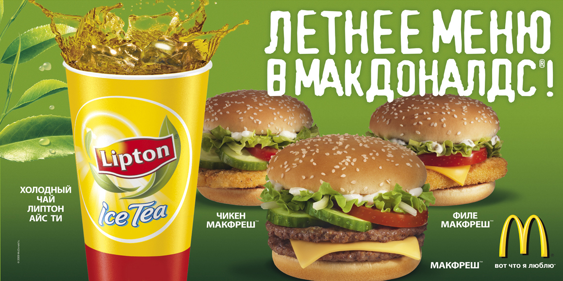 McDonalds и Lipton: "Свежий взгляд на жизнь"DDB выводят летнее меню в наружкуПродолжая "оздоравливать" меню, компания McDonalds запускает рекламную кампанию "Свежий взгляд на жизнь". Новое летнее меню в Макдоналдс, включая бургеры со свежими овощами Макфреш и холодный чай "Липтон", стало героем новой рекламной кампании "Свежий взгляд на жизнь", проводимой при участии бренд-команды Lipton Ice Tea. Макеты, разработанные агентством DDB, можно увидеть на улицах летом этого года (сроки кампании - июль-август 2009). Евгения Кузнецова, Sostav.ru |