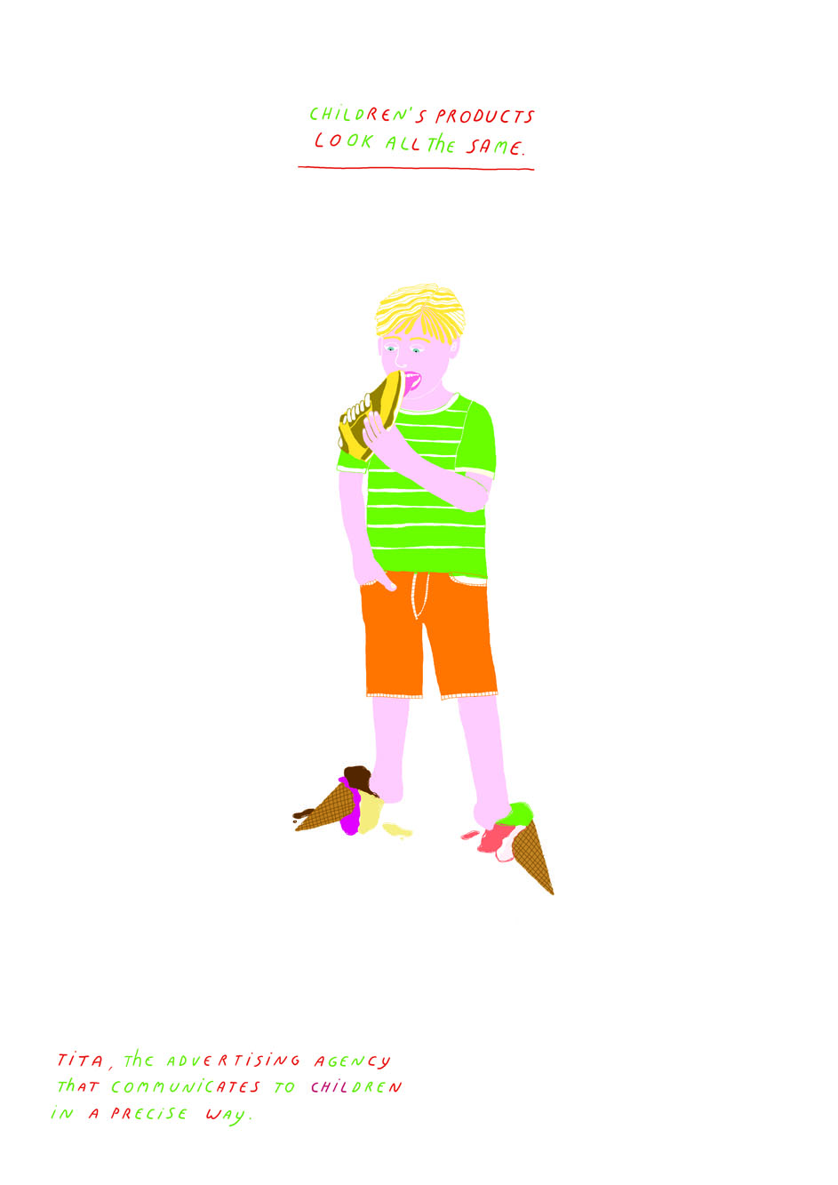 Миланские рекламщики общаются с детьмиTita - это рекламное агентство в Милане, Италия. Оно было основано в апреле 2008 Джузеппе Мацца, Эмануеле Бассо и Соней Роше. Не смотря на свою молодость, Tita уже успели разработать несколько громких рекламных кампаний, как в Италии, так и на мировом рынке. А сейчас агентством был запущен новый проект, Tita Cresce, направленный на разработку рекламы детских товаров.Слоган: "Товары для детей все выглядят одинаково. Tita, рекламное агентство, которое знает как правильно общаться с детьми." Advertising Agency: Tita, Milan, Italy Creative Director: Giuseppe Mazza Copywriter: Giuseppe Mazza Illustrator: Anna Cairanti |