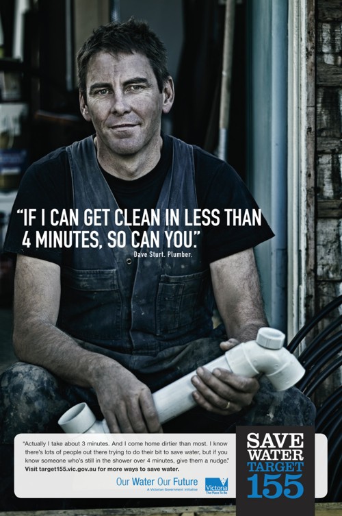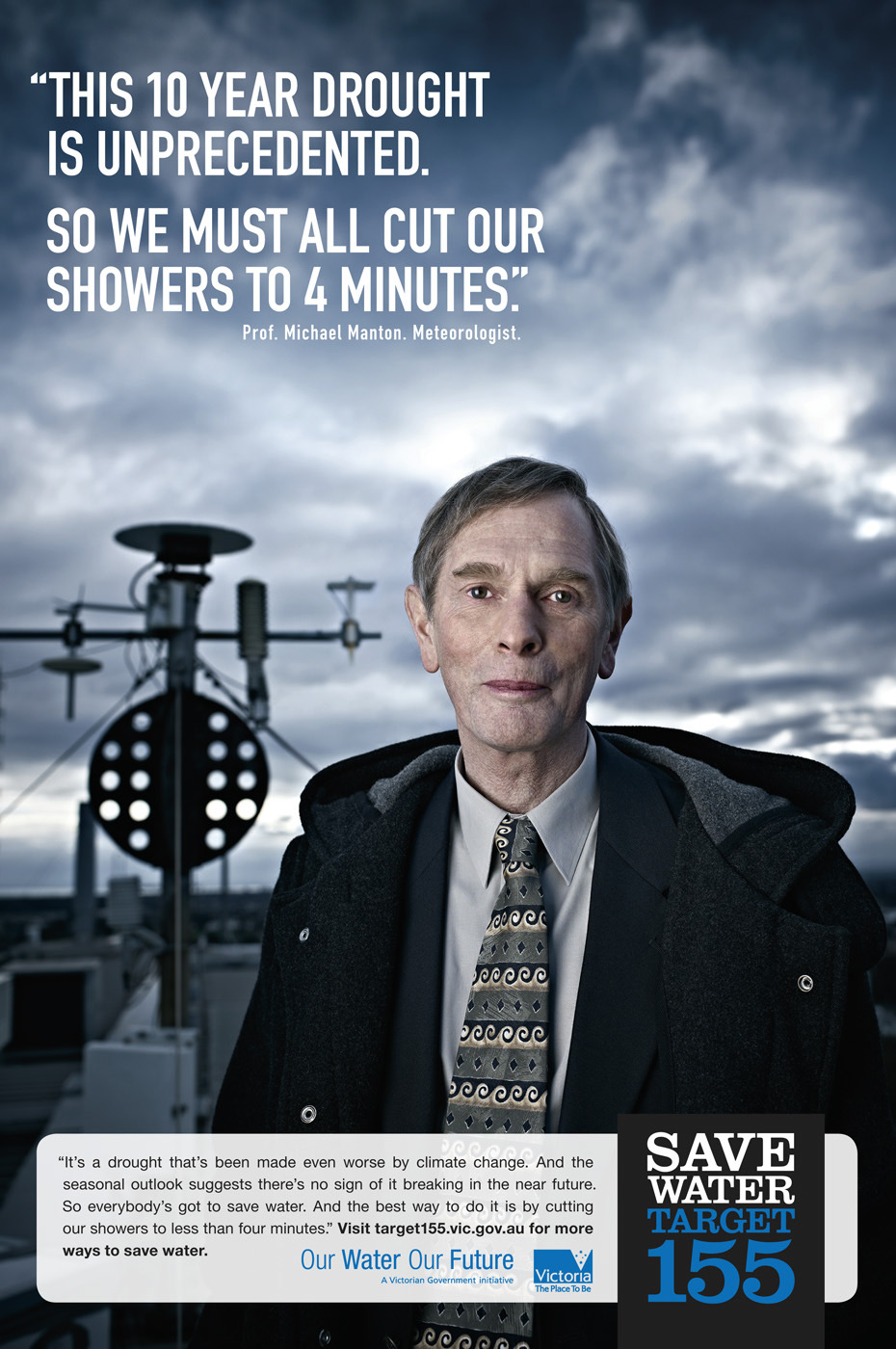 Вода - это будущее, считают в МельбурнеПоследние годы одной из главных проблем, беспокоящих жителей Мельбурна, стала затяжная засуха 2006 года. Это было вызвано резким увеличением температуры воздуха по сравнению с прошлыми годами. Кроме того в следующем году в Мельбурне был зафиксирован рекордно низкий уровень осадков. По оценкам ученых и специалистов засуха может продлиться в городе еще несколько лет, поэтому житилям и посетителям Мельбурна нужно быть готовыми к такому развитию событий заранее и рационально использовать воду. В связи с этим в городе была запущена новая социальная кампания от агентства Grey.Слоганы: "Если вы можете помыться меньше чем за 4 минуты, значит вы можете." "Каждые 45 секунд дольше 4 минут в душе - это еще одно ведро из дамбы." "Эта 10-летняя засуха беспрецедентна. Мы все должны сократить свое время в душе до 4 минут." "Пивоваренный завод сократил потребление воды на 35%. Я хочу чтобы моя семья сделала то же." Advertising Agency: Grey, Melbourne Creative Director: Nigel Dawson Art Director: Peter Becker Copywriter: Illustrator: Peter Becker Photographer: Hugh Peachey |