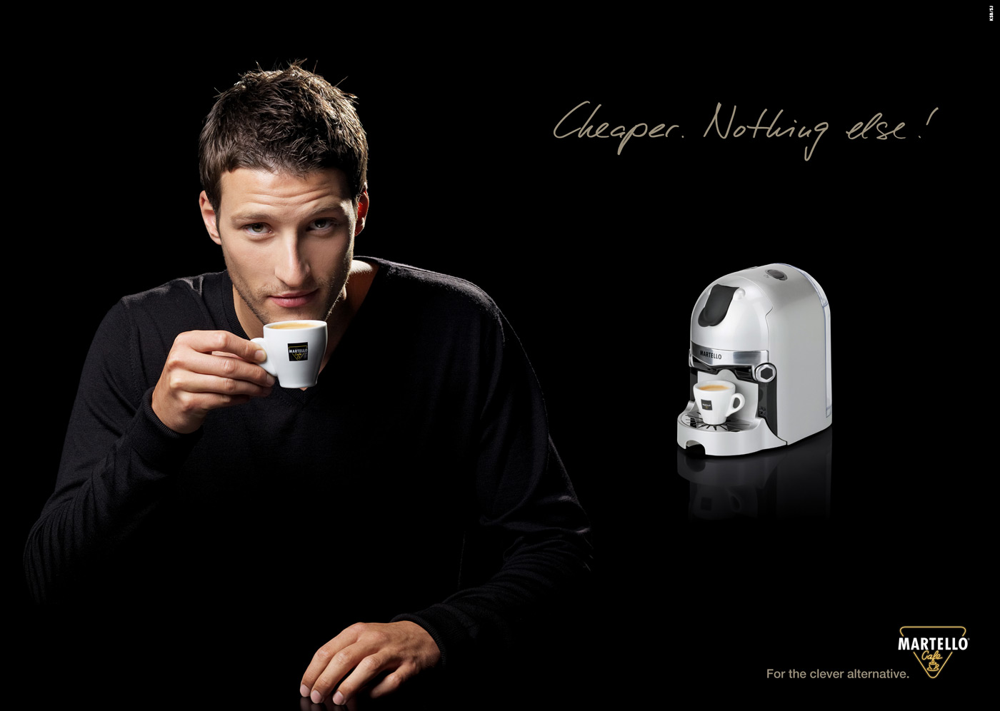 Гораздо приятней платить за любимый напиток меньшеКофе - горячий напиток из жареных зерен кофейного дерева. Благодаря содержанию кофеина оказывает стимулирующее действие. Каких только качеств ни приписывается кофе. Он делает людей активными, заставляет проснуться, полезен для здоровья и защищает от многих болезней... Однако, кроме этого кофе - это еще и изумительный вкус. И чтобы гарантировать его, нужно правильно выбирать зерна, использовать качественные кофе-машины и знать как готовить этот любимый многими напиток. Во всем этом уже давно зарекомендовали себя специалисты компании Martello.Рекламная кампания Martello от швейцарского агентства KSB/SJ позиционируется в основном на введенной недавно системе скидок на продукцию этого бренда. "Дешевле - это умный выбор." Слоган: "Дешевле. И больше ничего! Умный выбор." Advertising Agency: KSB/SJ, Z?rich, Switzerland Creative Director: Flo Wacker Art Director: Mario Moosbrugger Copywriter: Andy Lusti Graphic Designer: Mareike Jansen Photographers: Christian Ammann, Mathias Zuppiger |