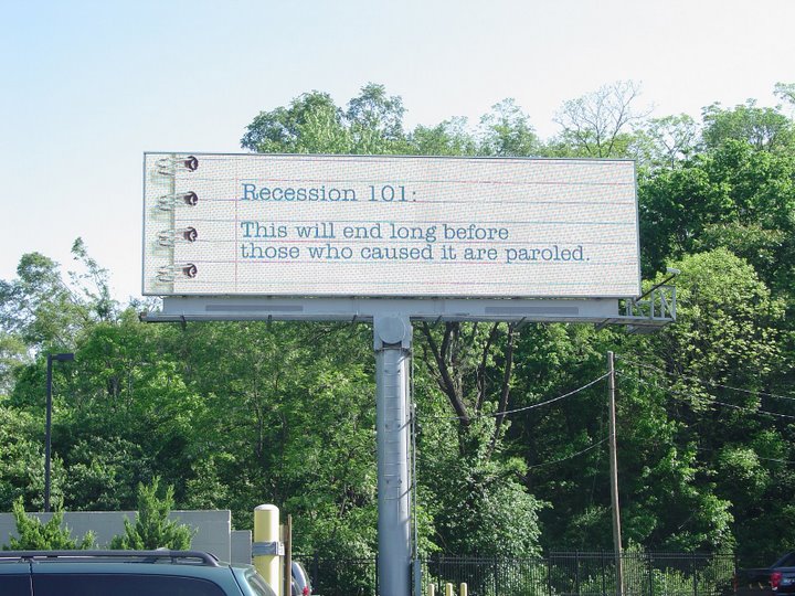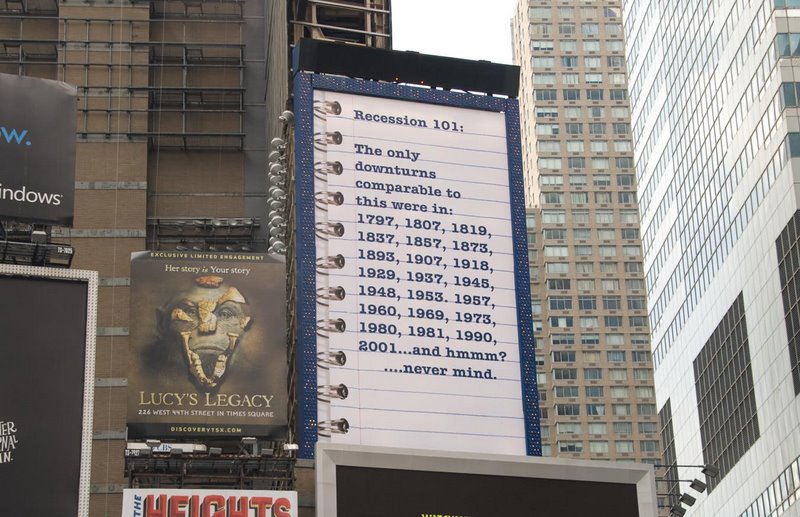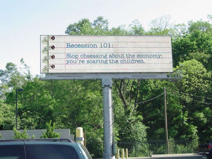В Америке запустили рекламную кампанию, призывающую не пугать детей кризисомВ Америке запустили новую социальную рекламную кампанию, призывающую мыслить позитивно даже в условиях рецессии. Программа носит название «Recession 101» и проводится более чем в 30 американских штатах. Подборку макетов можно посмотреть на официальном сайте. В рамках кампании на улицах американских городов были развешены плакаты, содержащие различные высказывания о рецессии, свидетельствующие о том, что она не так страшна, как считают. При этом спонсором кампании стал анонимный благотворитель, обеспокоенный реакцией американцев на кризис. На одном из рекламных плакатов содержится призыв: «Перестаньте постоянно говорить о рецессии, вы пугаете детей». На другом щите написано «Любопытно, но факт... рецессии заканчиваются», еще на одном — «Билл Гейтс основал Microsoft во время рецессии». Всего на территории Соединенных Штатов появилось уже более тысячи рекламных щитов. Рекламные поверхности, печатные материалы и сотрудников для производства рекламы предоставило Агентство наружной рекламы США. По официальным данным, рецессия в США началась в декабре 2007 года. Дефицит бюджета страны в рамках 2009 финансового года, стартовавшего в октябре 2008 года, впервые в истории государства превысил триллион долларов. Среди основных причин роста бюджетного дефицита называется увеличение госрасходов на поддержание экономики, находящейся в рецессии |