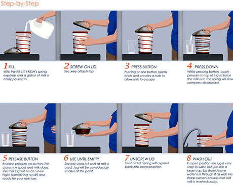 Упаковка Fresh сохраняет молоко свежим на неделю дольшеПластиковый кувшин для молока Fresh является одним из претендентов на приз James Dyson Awards (открытый международный конкурс дизайна, абсолютный победитель которого получит 10000 фунтов стерлингов). Кувшин Fresh предназначен для больших семей, для тех, кто покупает молоко галлонами (около 4,55 литров). Автор разработки утверждает, что в таком кувшине молоко хранится на неделю дольше, чем в другой упаковке. Дело в том, что молоко начинает портиться взаимодействуя с кислородом. Кувшин Fresh сделан же по такому принципу, благодаря которому количество кислорода в упаковке минимально. Чем меньше молока остается в кувшине, тем меньше становится сам кувшин. Гибкий кувшин работает следующим образом: нажмите на кнопку на крышке, и откроется внутренний клапан. Затем нажмите на крышку, и молоко начнет вытекать из носика. Отпустите кнопку и клапан закроется.![]() ![]() Отраслевой портал UNIPACK.RU |