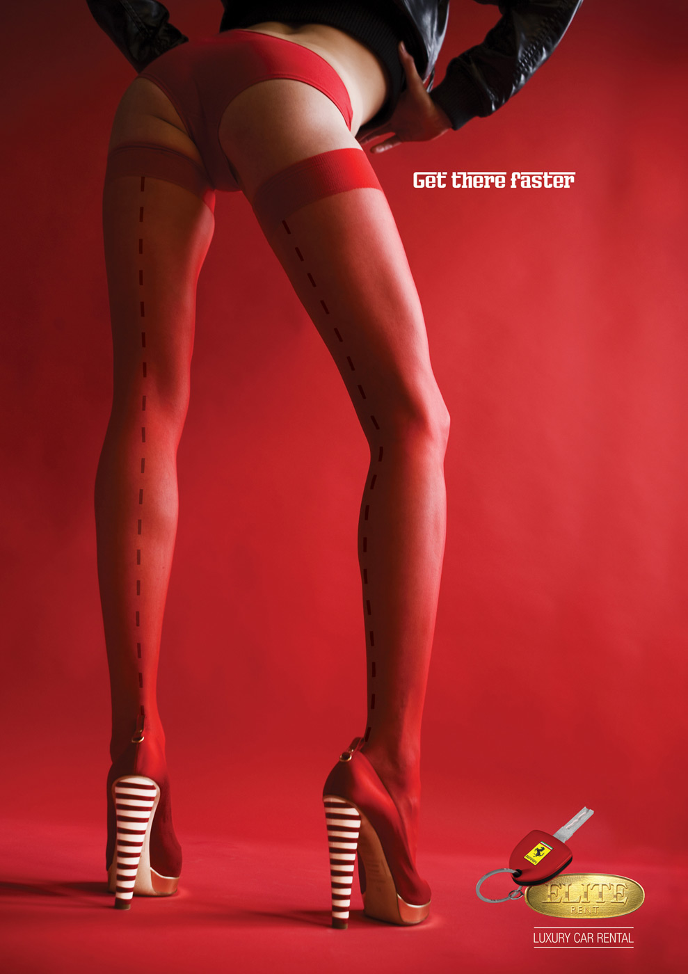 Женские ножки рекламируют прокат роскошных автомобилейПражское Publicis использует старый способ привлечь внимание водителейЧтобы привлечь клиентов к компании Elite Luxury Car Rental, занимающейся прокатом дорогих автомобилей, чешское агентство решило создать серию принтов, на которых машины вообще не фигурируют. Вместо машин там изображены красивые женщины… вернее красивые нижние половины женщин. Приманивать водителей длинными ногами - это давно известный штамп. Что же, в эой провокационной рекламе он работает не хуже. Тэглайн кампании Get There Faster в данном случае означает "Быстрее добиться успеха". И он явно намекает, что благодаря роскошному авто, пусть и взятому напрокат, заполучить шикарных женщин - проще простого. Elite Luxury Car Rentals - Ferrari