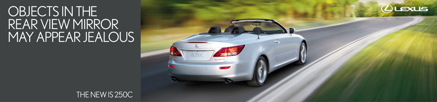 Lexus заставит гордиться собойLexus - подразделение компании Toyota, выпускающее модели класса "люкс" для рынков США и Европы. Именно по созвучию со словом "люкс" и была в свое время названа компания, считают многие. И считают, надо заметить, вполне справедливо. Ведь когда в 1983 компания Lexus была основана, главной ее задачей как раз было создание дорогих, красивых и престижных автомобилей.Этой задаче компания следовала все четверть века своей истории, собирая награды на престижнейших мировых автошоу и выставках. И именно на этом основана новая рекламная кампания Lexus от лондонских креативщиков из агентства CHI&Partners. Слоган: "Объекты в зеркале могут выглядеть завидующими." Advertising Agency: CHI&Partners, London, UK Creative Director: Charles Inge Art Director: Dave Masterman Copywriter: Ed Edwards Typographer: Kylie McLean |