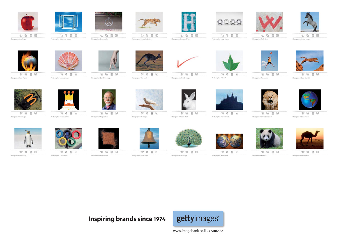 Полезные ресурсы от Getty ImageИнтернет-банки изображений уже много лет помогают дизайнерам и рекламщикам создавать новые продукты, и это ни для кого не секрет. И одним из таких банков является Getty Image, международная сеть, предоставляющая людям по всему миру картинки, музыку и прочие ресурсы - как за деньги, так и бесплатно. Недавно стартовала новая рекламная кампания израильского отделения Getty Image, Image Bank Israel. Не мудрствуя лукаво агентства Shalmor Avnon Amichay и Y&R Interactive из Тель-Авива сразу показывают на принтах именно то, что может получить клиент, воспользовавшись услугами Getty Image.Слоган: "Вдохновляем бренды с 1974 года." Advertising Agency: Shalmor Avnon Amichay / Y&R Interactive Tel Aviv, Israel Chief Creative Director: Gideon Amichay Executive Creative Director: Tzur Golan Group Creative Director / Art director: Tal Ben-Ari Copywriter: Matan Yedidya Account Director: Adam Polachek Account Supervisor: Dana Cogan Account Executive: Anat Ruderman |
