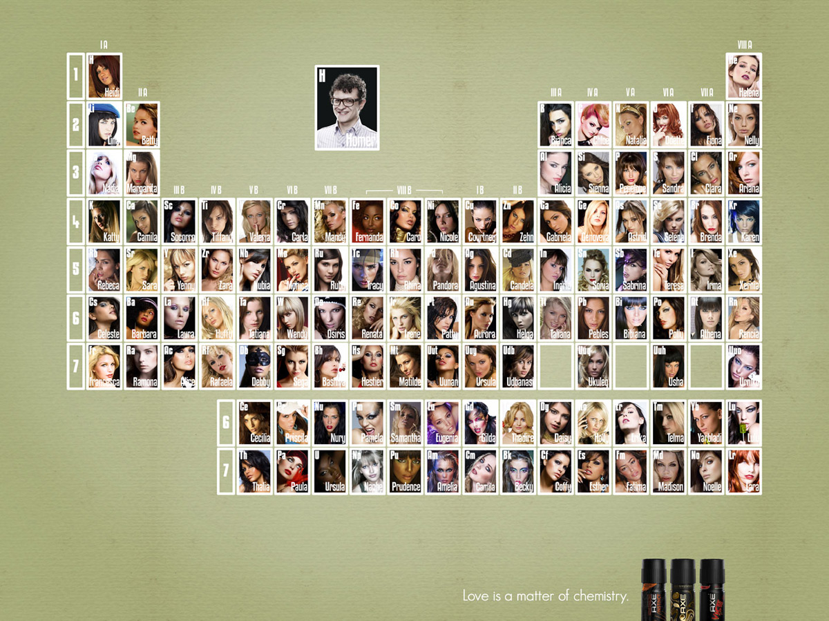 Почувствовать, что такое Axe EffectВпервые марка Axe была запущена во Франции в 1983 году и с каждым годом завоевывает все большую популярность. Так, в настоящее время она представлена уже более чем в 60 странах мира. Успех Axe построен на использовании инновационных способов продвижения продукта. Это же касается и нового рекламного принта от колумбийского агентства Lowe/SSP3-Bogot?. "Почувствуйте Axe Effect на себе, - предлагают креативщики из Lowe - Ведь, в конце концов, любовь - это всего лишь обычный химический процесс".Слоган: "Любовь - это химический процесс" Advertising Agency: Lowe/SSP3-Bogota, Colombia Executive Creative Director: Jose Miguel Sokoloff Creative Directors: Margarita Olivar, Juan Carlos Gonzalez Art Director: Margarita Olivar Copywriter: Juan Carlos Gonz?lez Photographer: Esteban Sosnitsky, Zumo Agency Producer: Sonia Llanos Other Additional Credits: Juanita Delgado, Natalia Franco |