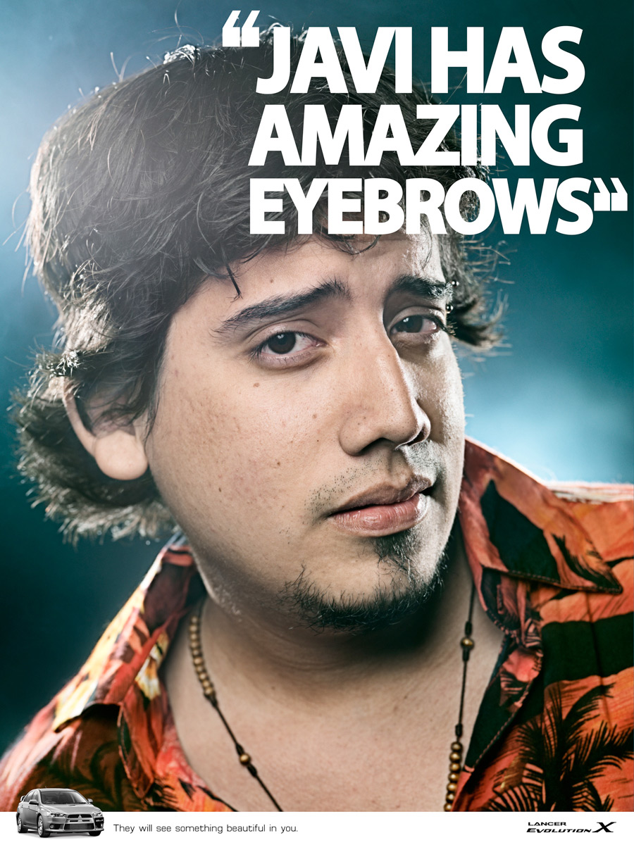 Гламурные красавчики в новых Mitsubishi LancerНовая реклама Mitsubishi Evolution обещает, что сядя за руль Lancer Вы уж точно сможете показать всем свои лучшие стороны. Принты от рекламного агентства Leo Burnett из Коста-Рики пестрят фотографиями гламурных моделей, которые демонстрируют различные части своего лица - дескать за рулем этой машины даже я покажусь красавчиком. Изрядная доля цинизма привлекает взгляды к этой кампании Mitsubishi.Слоган: "В тебе увидят что-то прекрасное." Advertising Agency: Leo Burnett Costa Rica Executive Creative Director: Douglas Castro Creative Director / Copywriter: David Carvajal Art Director: Yoshua Le?n Photographer: Tadeuz Jalocha Other additional credits: Jennifer Caldwell |