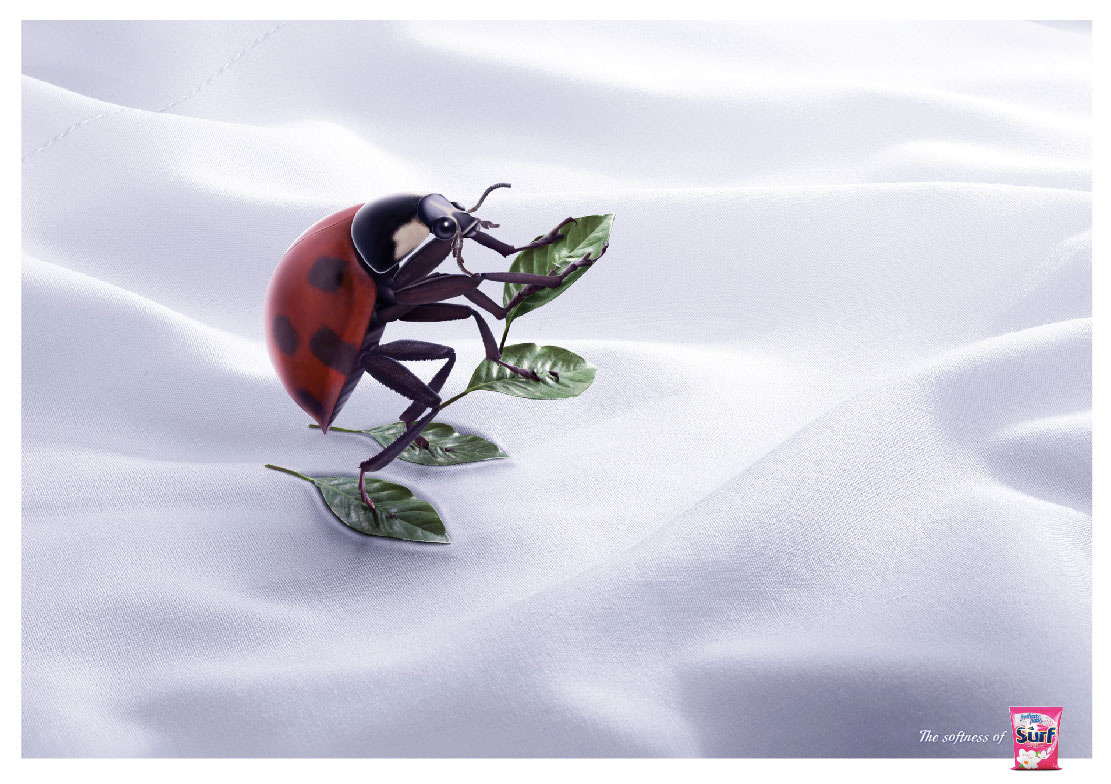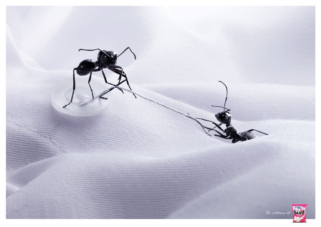Surf превратит любую простынь в перинуSurf - бренд стирального порошка, выпускаемого компанией Unilever с 1950-ых годов. Основным плюсом порошка всегда выставлялся тот факт, в его состав входят компоненты, позволяющие достигать повышеной мягкости стираемого белья. Эта же идея была использована рекламным агентством Lowe из Бангкока, Тайланд, для новой кампании бренда. Стираные Surf-ом простыни показаны на принтах на столько мягкими, что насекомые могут использовать любую из них как настоящую перину.Слоган: Мягкость Surf. Advertising Agency: Lowe Bangkok, Thailand Executive Creative Director / Creative Director: Dominic Stallard, Clinton Manson Art Directors: Chanwichit Khuyngern, Scott Hitchcock, Dominic Stallard Copywriter: Showtika Somjid, Clinton Manson Producer: Nuch Lertviwatchai, Monrudee Aniwat Assistant Producer: Saronyod Kittikunwong Photographer: Anuchai Secharunputong, Nok Pipattungkul Retoucher: Remix Bangkok |