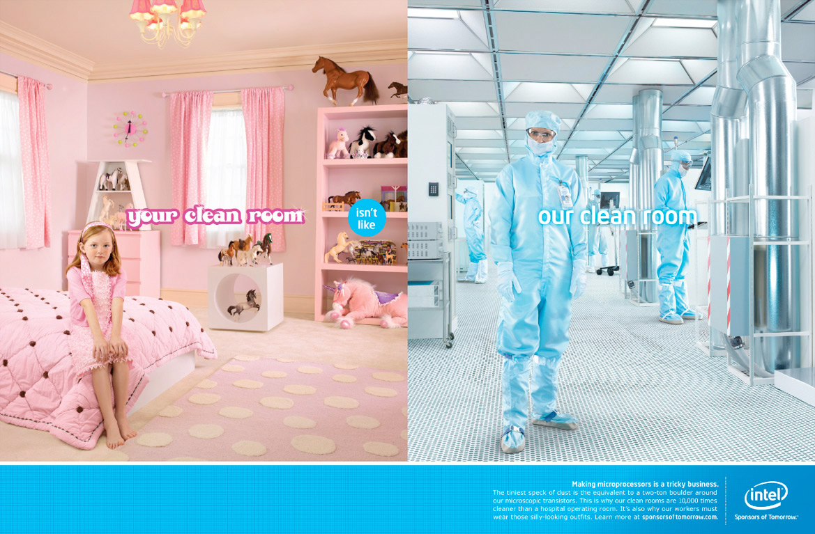 У Intel всегда есть новостиКорпорация Intel утверждает, что специалисты компании постоянно внедряют всевозможные инновации в современные технологии, делая жизнь людей во всем мире интересней, насыщенней и удобней. Эту идею проталкивают и в новой рекламной кампании от креативного американского агентства Venables Bell & Partners. Кампания раскручивает проект Intel Sponsors of Tomorrow ("Спонсоры завтрашнего дня"), главным слоганом которого является претенциозная фраза "Сегодняшний день уже настолько вчерашний".Слоганы: Ваша чистая комната совсем не такая как наша чистая комната. Производить микропроцессоры - дело хитрое. Самое крошечное пятнышко пыли - эквивалент двум тоннам грязи вокруг наших микроскопических транзисторов. Вот почему наши чистые комнаты в 10 000 раз более чисты чем рабочая зона больницы. Это также то, почему наши рабочие должны носить то глупо-выглядящее обмундирование. Узнайте больше на sponsorsoftomorrow.com. Ваши рок-звезды совсем не такие как наши рок-звезды. Коридоры наших заводов забиты множеством высококлассных мыслителей. Но только горстка из них может целиком "заполнить комнату" - это такие люди, как, например, доктор Тед Хофф, один из изобретателей самого первого микропроцессора Intel. В далеком 1969 году микропроцессор Intel 4004 просто взорвал мозги людей - и это уже стало традицией, которая жива до сих пор. Узнайте больше на sponsorsoftomorrow.com. Состав творческой группы: Advertising Agency: Venables Bell & Partners, San Francisco, USA Art Director: Crystal English Art Buyer: Debbie Mobley Photographer: Frank Uyttenhove |