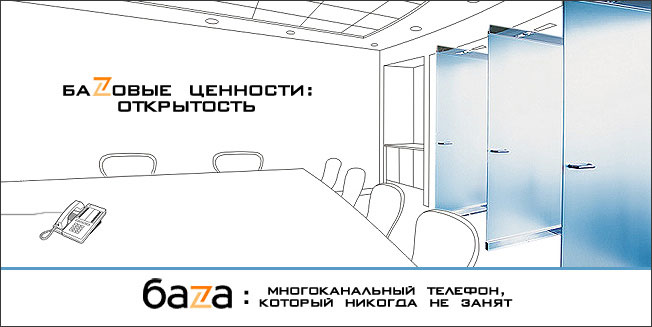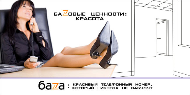 "Базовые ценности" Центрального телеграфаКампания от креативной группы "Во-первых"Креативная группа "Во-первых" выиграла тендер на разработку рекламной концепции услуги "База" компании "Центральный Телеграф". "База" - это предоставление виртуального многоканального городского номера с гибкой системой обработки входящих звонков. В основе рекламной концепции - соотнесение общечеловеческих, глобальных ценностей и уникальных преимуществ (собственных "ценностей") рекламируемого продукта. Так, гибкие возможности переадресации соотнесены в рекламных плакатах со Свободой, многоканальность (всегда свободный телефон) - с Открытостью, а сохранение телефонного номера за абонентом - с Постоянством. Красивый, легко запоминаемый номер, естественно, был воплощен в образе женской Красоты. Серию рекламных плакатов объединяет слоган: "Базовые ценности". |