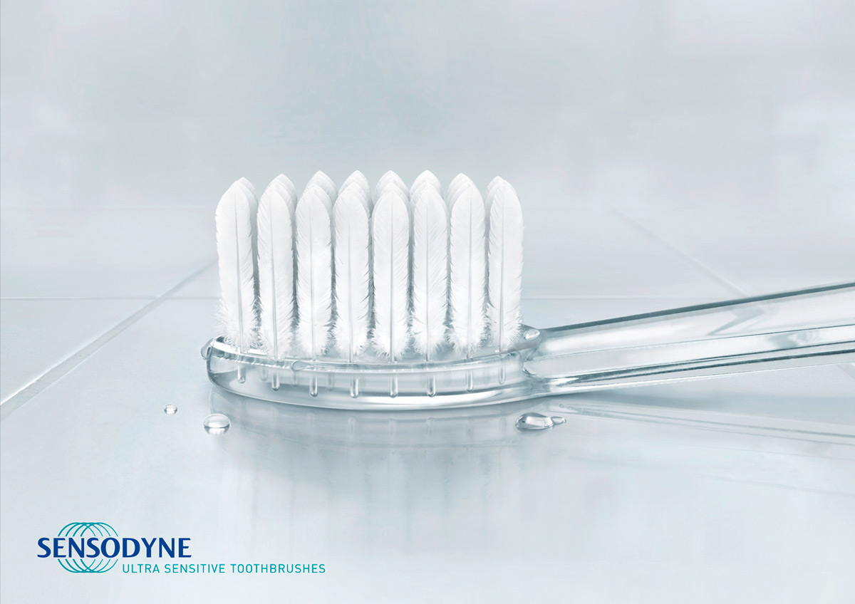Sensodyne утверждает, что нежнее зубной щетки не найтиНе так давно начав производить зубные щетки, Sensodyne уже позиционируют их как потрясающе чувствительные. На этой идее строится их новая рекламная кампания от немецкого агентства Grey Worldwide. Нежность призвана пронизывать принты новой кампании, даже вместо щетинок на щетке использованы нежнейшие перья.Слоган: Чрезвычайно чувствительные зубные щетки. Advertising Agency: Grey Worldwide Dusseldorf, Germany Creative Director: Jorn Sonnenberg Art Director: Dennis Wolf Copywriter: Anja Schachheim Illustrator: Franz Steiner Photographers: Franz Steiner, Rainer Behrens Print production: Peter Engel, Noyan ozok Post Production: Blutsbruder Design |