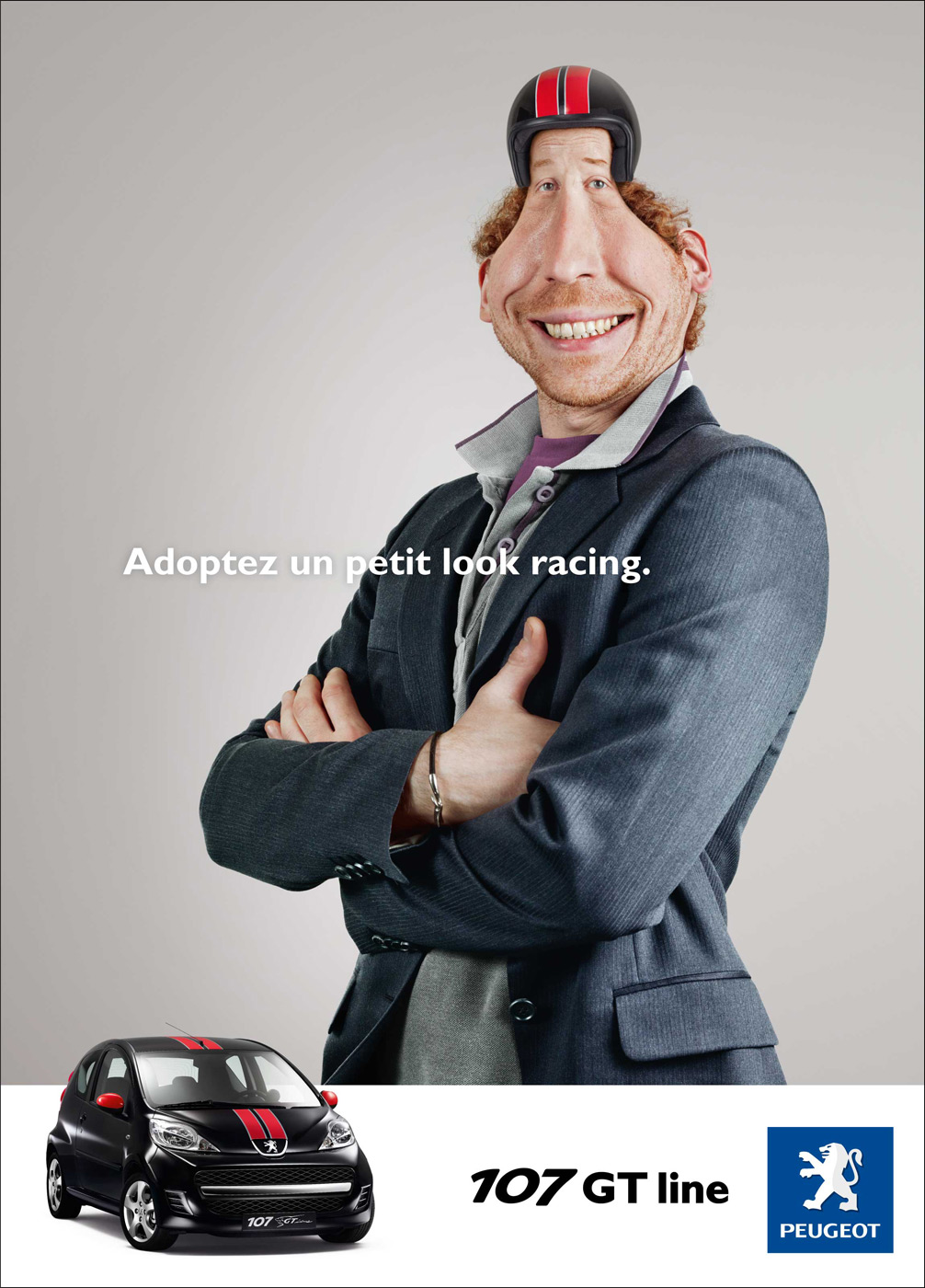 Немного погонять с PeugeotКомпания Peugeot появилась на мировом рынке в 1905 году, и с тех пор уверено держит лидирующие позиции на поприще автомобилестроения. Конструкторы компании выпускают на рынок все новые и новые модели, и вот появилась очередная - доработанная версия старой Peugeot 107, а точнее Peugeot 107 GT Line. Новая модель, представленная французским автомобилестроителем, благодаря некоторым незначительным модификациям имеет спортивный облик, ну а новая рекламная кампания Peugeot была разработана французским же креативным агентством BETC EURO RSCG. Довольно забавные принты новой кампании акцентируют внимание именно на той самой спортивности, и более того - предлагают всем и каждому почувствовать себя за рулем Peugeot 107 GT настоящим гонщиком.Слоган: Выдержи немного взгляда гонщика. Advertising Agency: BETC EURO RSCG, France Creative Director: St?phane Xiberras Copywriter: Olivier Apers Art director: Hugues Pinguet Photographer: Illario Magali Retouching: La souris sur le gateau |