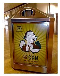Напомним, это был предвыборный девиз Обамы, который из-за невероятной популярности чернокожего кандидата моментально стал крылатой фразой во всем мире. Эстонцы же обыграли его: дело в том, что слово "can" имеет также значение "жестянка, консервная банка". Кроме того, у американцев оно означает "мусорный ящик", "отхожее место" и даже "задница". В разговорной речи еще есть значение "тюрьма". Также на урне напечатан логотип и веб-адрес компании Eesti Pakendiringlus, которая производит из переработанных отходов упаковку для разного рода товаров. Как следует из документов, помещенных на сайте, компания сотрудничает с крупнейшими в стране фирмами по переработке мусора и с 2005 года запустила сеть сбора использованной упаковки. Судя по всему, сфотографированная урна и есть пример работы этой сети. Вместе с тем, остается неясным, на каких правах компания использует портрет Обамы для рекламных целей. Отметим, что еще в пору предвыборной кампании в США и некоторое время после победы Барака Обамы его образ стал использоваться предпринимателями по всему миру. Говорили о новом явлении - "обамомании", когда товары с изображением президента или его именем раскупались в самые короткие сроки. Адвокаты Белого дома даже заявили об ограничении коммерческого использования образа Обамы. Отголоски "обамомании" дошли и до России: начиная с даты избрания Обамы, его образ неоднократно использовался отечественными рекламодателями. В Москве его одно время "эксплуатировали" в рекламе солярия и сети стоматологических клиник с лозунгом о "полной стоматологической демократии". В Ростове в витрине магазина был выставлен чернокожий мужчина в галстуке, внешне похожий на Обаму, который читал такие вирши: "Справим кризису поминки, купим шапку и ботинки!". Не обошлось без скандалов: рекламный плакат шоколадно-ванильного мороженого "Дуэт" с надписью "У всех на устах - Темное в Белом!", на котором изображен чернокожий человечек на фоне Капитолия, посчитали проявлением расизма. NEWSRU.COM |