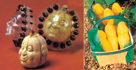 Хоть идея и не новая, американский фермер John M. Czeski выращивал тыквы в человеческим лицом помещая их в алюминиевые пресс-формы еще в 30-ых годах, тем не менее груши впечатляют! ![]() Вот еще примеры фигурных овощей и фруктов. Возможно, некоторые из них создавались с точки зрения уменьшения логистических затрат, например арбузы, остальные же являются предметом чистого творчества и проявления фантазии.