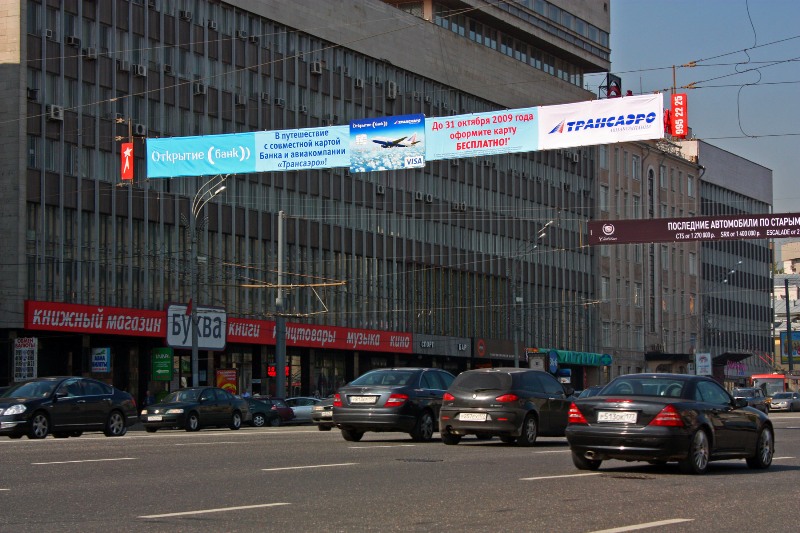 Нестандартная перетяжка для банка ОткрытиеС 1 по 10 сентября Московская Городская Реклама размещает нестандартные перетяжки для банка Открытие. Перетяжки изготовлены с использованием пластиковых экстендеров в виде банковской карты.Кампания проходит в поддержку акции банка по оформлению кредитных карт по совместной программе банка Открытие и авиакомпании Трансаэро. Всего в кампании задействовано 6 нестандартных перетяжек на основных магистралях столицы. Акция проходит по заказу агентства АТОР-СИТИ. |