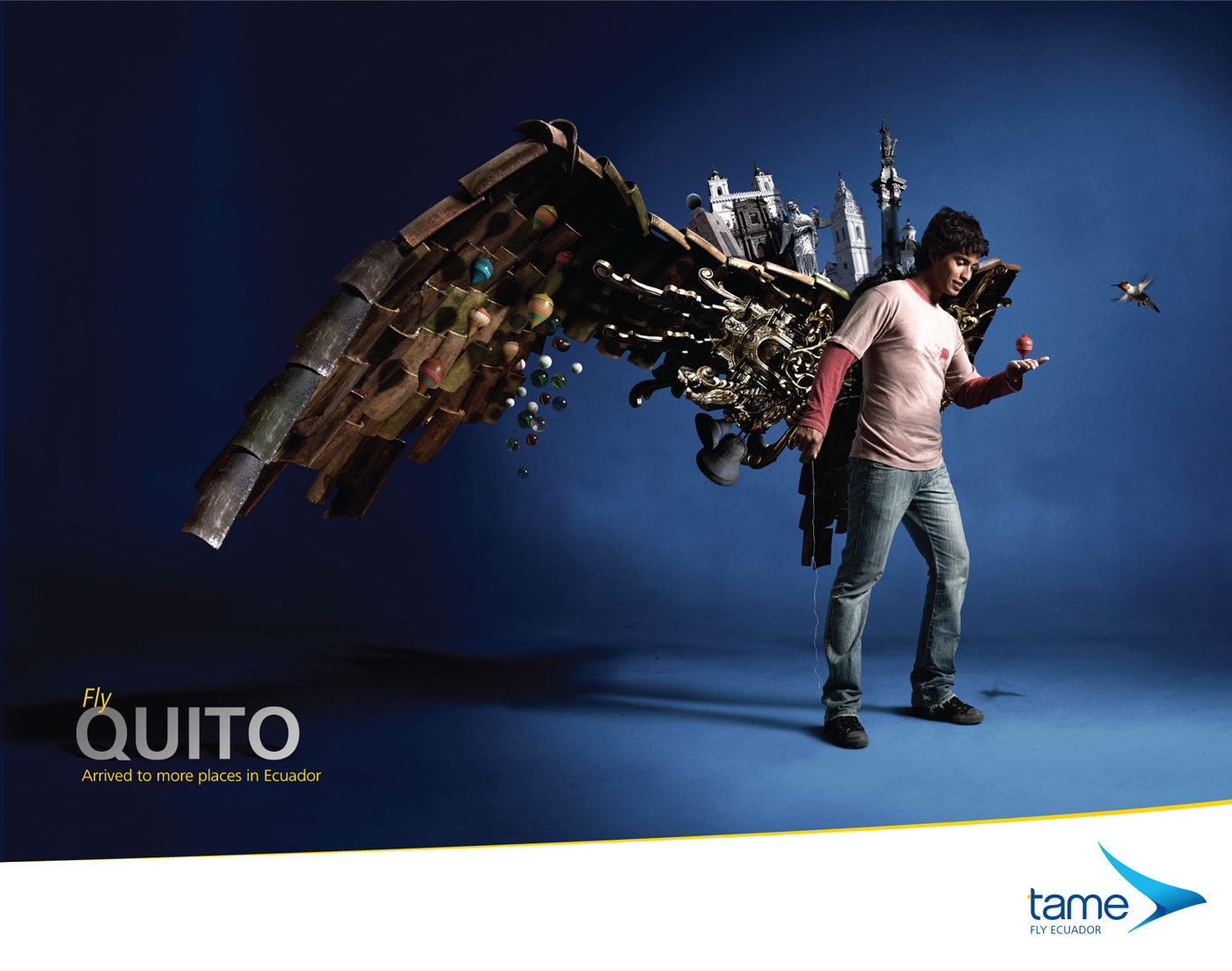 Tame Ecuador Airlines хочет вырваться как можно дальше за пределы родной страны"Если хочется посетить Эквадор, то вам нужно обращаться в Tame," - утверждает новая рекламная кампания от эквадорского агентства La Facultad - "Ведь Tame Ecuador Airlines летает в гораздо большее количество мест, нежели конкуренты". Созданная когда-то исключительно по необходимости - в 1962 году высшие круги Эквадора посчитали, что нельзя больше так тормозить коммерческое, социальное, туристское и культурное развитие страны и основали Tame - на сегодняшний день компания является уже достаточно крупной, и хочет привлекать все больше и больше клиентов, регулярно запуская для этого новую рекламу.Слоган: Прибыли в большее количество мест в Эквадоре. Advertising Agency: La Facultad, Quito, Ecuador Creative Team: Sebastian Villagamez, Germ?n Andrade, Santiago Zumirraga, Xavier Prado, Andres Freile, Diego Jarrin Photographer: Ramiro Salazar Account executive: Ana Julia Ayala |