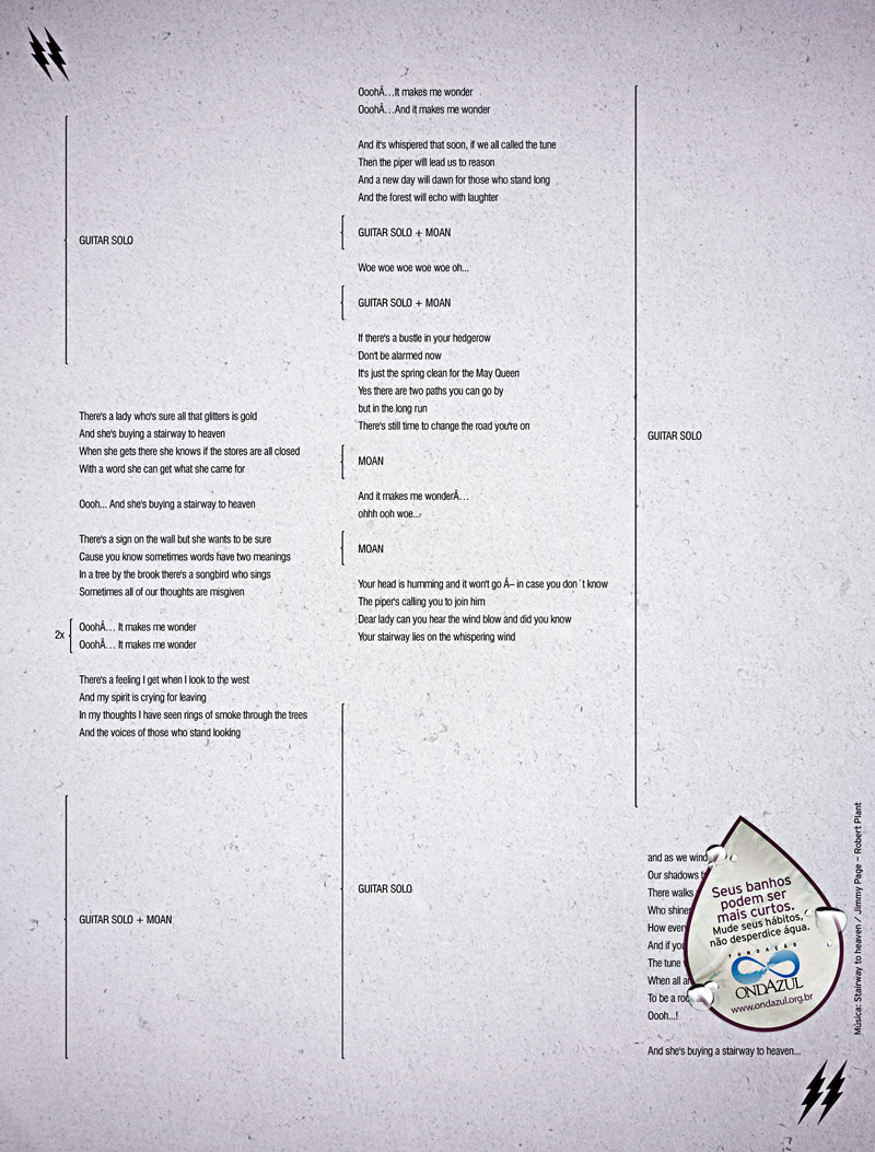 Долго ли вы проживете без воды?OndAzul (или Onda Azul) - это общественное экологическое движение, основанное в октябре 1990 года в Бразилии. В Европу это движение пришло только в 2004, однако реклама его уже часто встречается на специализированых сайтах и в журналах. Так и сейчас, запущена очередная рекламная кампания OndAzul от креативного агентства Leiaute из родной для фонда Бразилии. На этот раз она посвящена чистой воде."Вода - это жизнь, и все мы состоим в основном из воды," - говорят активисты организации - "Однако, не смотря на то, что Бразилия обладает огромным запасом свежей воды, весь он может быть потерян при теперяшнем к ней отношении". Защиту чистой воды от ужасов современного мира OndAzul называют главной задачей организации на сегодняшний день, и вся их новая реклама направлена именно в эту сторону. Слоган: С ванной могут случиться и проблемы. Не тратьте воду. Advertising Agency: Leiaute, Salvador, Bahia, Brazil Creative Directors: Raul Rabelo, Carlos Andrade Art Director: Cristiano Franco Copywriter: Thiago Rezende |