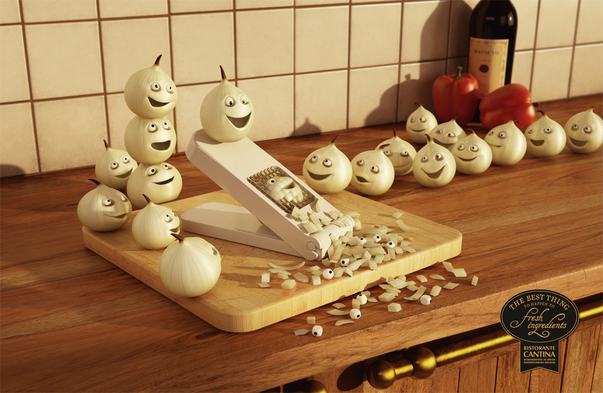 Самоубийство - дело овощейRistorante Cantina и вкусная еда - это синонимыДаже сами овощи счастливы от того, что попадут в руки шеф-повара Ristorante Cantina, - утверждают принты новой рекламной кампании ресторана от швейцарского креативного агентства Euro RSCG. Веселые луковицы и морковь сами спешат приготовиться, дабы не упустить вожделеемого места в одном из вкуснейших блюд, подаваемых в Ristorante Cantina. В конце концов, ведь это лучшее, что может случиться со свежими ингредиентами. Слоган: Лучшее, что может случиться со свежими ингредиентами. Advertising Agency: Euro RSCG Zurich, Switzerland Creative Director: Axel Eckstein Art Director: Philipp Lengyel Copywriter: Wolfgang Bark Illustrator: MDI Digital Ltd. Other additional credits: Executive Creative Director: Frank Bodin |