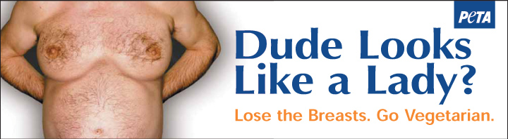 PETA пугает мясоедов появлением "мужских сисек"Организация "Люди за справедливое обращение с животными" (People for the Ethical Treatment of Animals; PETA) запустила в Глазго новую рекламную кампанию, призывающую шотландцев отказаться от мяса. При этом в качестве главного аргумента PETA приводит угрозу образования так называемых "moobs" ("мужские сиськи").В рамках кампании в Глазго недалеко от больницы установлен билборд, демонстрирующий отталкивающего вида мужское туловище с увеличенной грудью и надписью: "Чувак похож на леди? Избавься от грудей, стань вегетарианцем" (Dude Looks Like a Lady? Lose the Breasts, Go Vegetarian). При этом данная фотография - не обработана, а показывает реальный мужской бюст. Согласно данным PETA, у едоков мяса вероятность ожирения в девять раз больше, чем у "строгих" вегетарианцев. Кроме того, PETA говорит о том, что доказана и неопровержима причинно-следственная связь между продуктами животного происхождения и болезнями сердца, диабетом и раком. "Нежелательное увеличение груди у мужчин показывает, что нет ничего "мужественного" в употреблении мяса и молока", - отмечает директор по спецпроектам PETA Пурва Джошипура (Poorva Joshipura). - "Жестокость по отношению к животным, экологическая деградация и связанные с "животными" продуктами болезни - этих причин достаточно, чтобы стать вегетарианцем, но увеличение мужской груди - это тоже серьезный аргумент". |