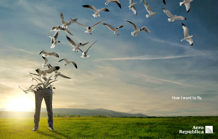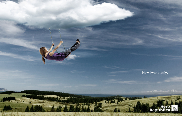 Оторваться от земли с Aero RepúblicaAero República - это колумбийская авиакомпания, которая начала свою деятельность в июне 1993 года и базируется в Боготе. На данный момент она является вторым крупнейшим авиаперевозчиком в Колумбии.Компания позиционирует себя как предлагающую инновационный сервис по разумным ценам, а сейчас ее политика практически целиком направленна на расширение своих международных операций. Заключаются стратегические альянсы с другими авиакомпаниями, проводятся всевозможные акции для привлечения новых клиентов, и конечно же запускаются все новые и новые рекламные кампании. Одна из последних была создана креативным агентством Lowe/SSP3 (Богота, Колумбия) и главной ее идеей стало вечное стремление человека к полету. Слоган: Как я хочу летать. Advertising Agency: Lowe/SSP3, Bogota, Colombia Executive Creative Director: Jose Miguel Sokoloff Creative Director: Margarita Olivar, Juan Carlos Gonz?lez Art Director: Margarita Olivar, Yenssy Gonzalez Copywriter: Juan Carlos Gonzalez, Carlos Camacho Agency Producer: Sonia Llanos Account manager: Pablo Arango |
