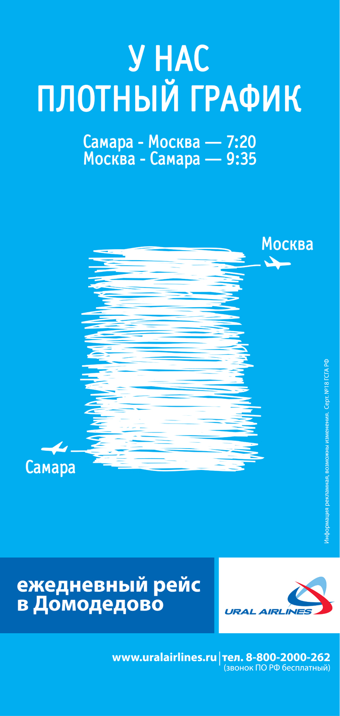 Путешествие из Самары в МосквуКампания Уральских авиалиний от агентства "Небо"Агенство "Небо" продолжает сотрудничать с "Уральскими авиалиниями". Новая кампания посвящена открытию нового рейса: Самара - Москва - Самара. Макеты размещаются в наружной и печатной рекламе. На радио ротируется рекламный ролик. Состав творческой группы Компания "Уральские авиалинии": Коммерческий директор: Кирилл Скуратов Начальник отдела маркетинга: Татьяна Вацек Начальник отдела рекламы: Елена Ахлюстина Агентство "Небо": Креативный директор: Владислав Макаров, Наталья Смелова Арт-директор: Сергей Кожара Копирайтер: Татьяна, Виноградова, Наталья Смелова Дизайнер: Евгения Джуринская Аккаунт-менеджер: Анна Полуектова |