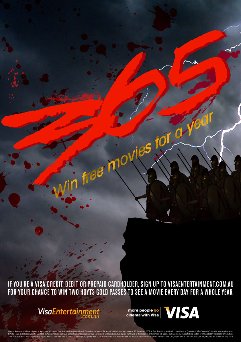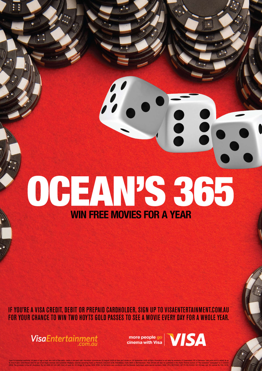 Visa Entertainment обещает развлечь своих клиентовСегодня уже врядли найдется в цивилизованном мире хотя бы один человек, не знающий что такое кредитная карта Visa. Однако Visa Entertainment не собирается просто так держаться за заработанную репутацию. Сейчас запущена новая акция, которую корифеи банковского бизнеса проводят совместно с глобальной сетью кинотеатров Hoyts. Рекламная кампания акции была разработана австралийским агентством WHYBIN/TBWA/TEQUILA/SYDNEY. "Если вы владелец кредитной или дебетной карты Visa, зарегистрируйтесь на visaentertainment.com.au, и вы получите шанс выиграть золотой абонемент в сеть кинотеатров Hoyts, чтобы каждый день смотреть кино бесплатно," - сообщают принты новой кампании клиентам Visa.Слоган: Выиграй бесплатное кино на весь год. Advertising Agency: WHYBIN/TBWA/TEQUILA/SYDNEY, Australia Executive Creative Director: Garry Horner Creative Director: Matt Kemsley Art Director / Typographer: Janelle Shearer Account Director: De-Anne Joseph Campaign Manager: Nicole Marcossi Copywriter: Joe Craig |