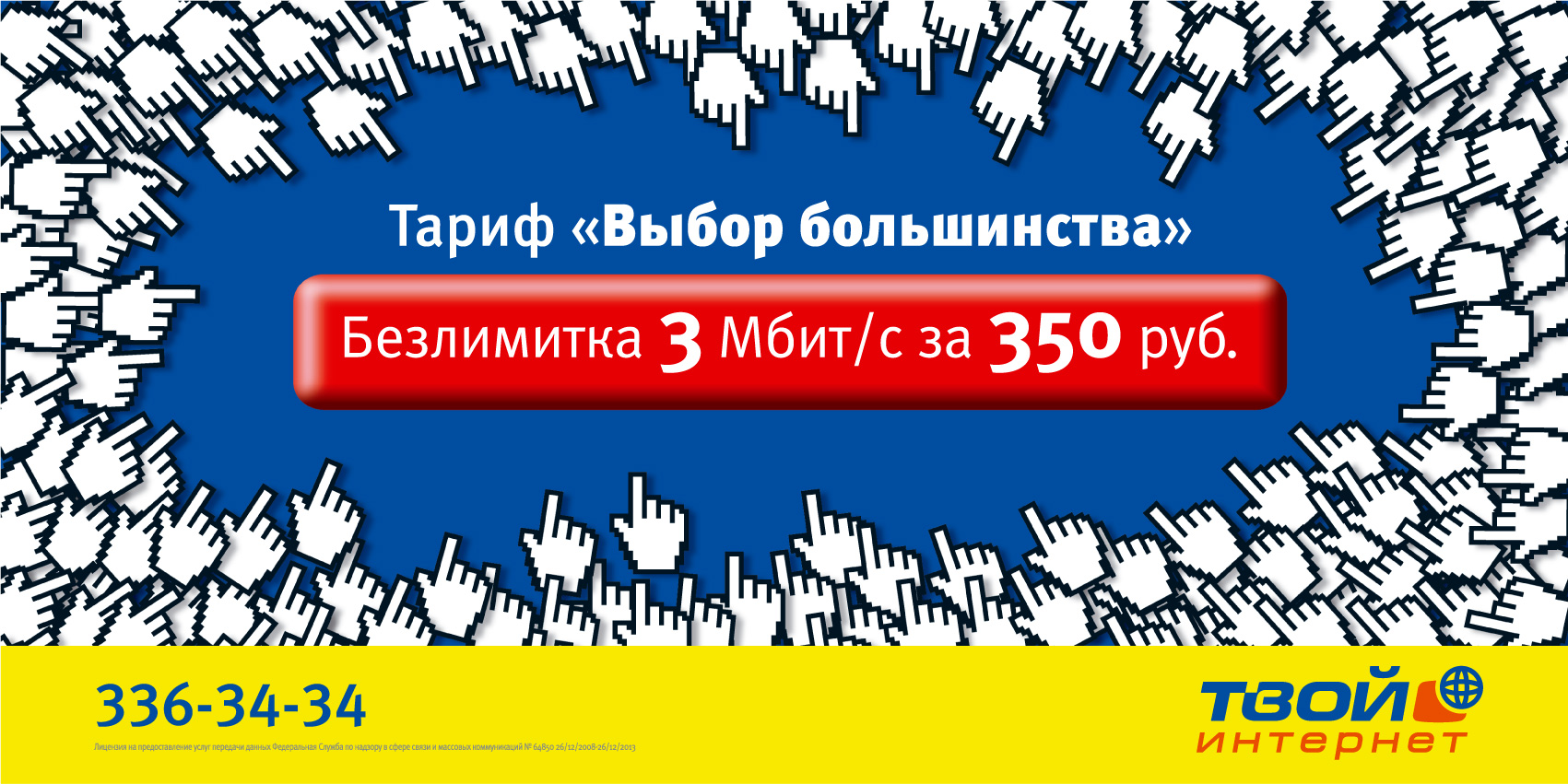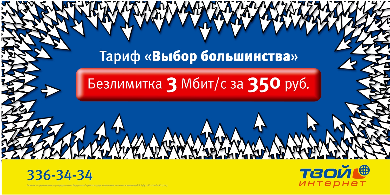 "Небесный" интернетКампания для ТКТ от питерских рекламистовДля услуги "Твой Интернет" компании "ТКТ" агентство "Небо" разработало креативную концепцию новой рекламной кампании для продвижения тарифа "Выбор большинства". Кампания направлена на новых абонентов, у которых еще нет безлимитного проводного доступа в Интернет. Исследования компании "ТКТ" показывают, что оптимальная скорость, необходимая для свободного пользования всеми доступными ресурсами Интернета (включая скачивание музыки, кино, игры и т.д.), на сегодняшний день является скорость до 3 Мбит/сек. Помимо этого, важным фактором при выборе тарифа является его цена. Поэтому, безлимитный интернет на скорости 3 Мбит/сек за 350 руб. -это наиболее оптимальный тариф по соотношению "цена-скорость" и потому - самый популярный по подключениям. Перед агентством была поставлена задача лаконично и доступно сообщить потребителю эту информацию. Телевизионный ролик стилистически является продолжением ролика "Лапка", который был сделан "Небом" для ТКТ 2 года назад. В новом ролике главным героем по прежнему остается интернетный значок-лапка, но кроме нее присутствуют и другие герои - другие лапки и злой смайлик на баннере. Кампания реализована в наружной рекламе (щиты 6х3, сити-форматы, путевые щиты, стикеры в метрополитене), в Интернете (баннерная и контекстная реклама), на телевидении (ролик 20 секунд) и на радио. Телевизионный ролик вышел в эфир 17 сентября, кампания в прессе стартует 21 сентября. Состав творческой группы ОАО "ТКТ": Директор по маркетингу: Елена Паснюк Руководитель департамента бренд-направления: Кристина Апель Бренд-менеджер: Мария Лада Агентство "Небо": Креативный директор: Владислав Макаров, Наталья Смелова Копирайтер: Наталья Смелова Старший арт-директор: Сергей Кожара Аккаунт-менеджер: Анна Полуектова Belka & Strelka Film Production: Продюсер: Елена Белкова Режиссер: Владислав Макаров Оператор: Андрей Вакорин Композитор: Алексей Яковель Постпродакшен: Postproduction.ru. |