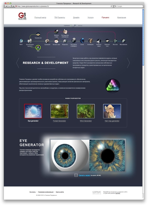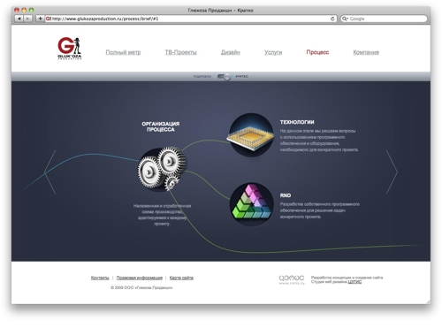 GLUK'OZA заказала сайт студии "Цэтис"Студия "ЦЭТИС" создала сайт для GLUK'OZA Production - российской анимационной студии, предлагающей рынку полный арсенал графических решений, основанных на мировых стандартах качества 3D-индустрии.Находясь в продакшн-студии, посетитель должен постоянно ощущать движение вокруг, жизнь, работу, поэтому на сайте реализовано множество интерактивных динамических элементов. Ресурс является примером создания эффективных элементов юзабилити и программирования высокой сложности. Сайт создан с использованием уникальных современных технологий. Одна из них - Ambilight, впервые в России реализована для любого типа контента, включая видео и статические графические изображения. |