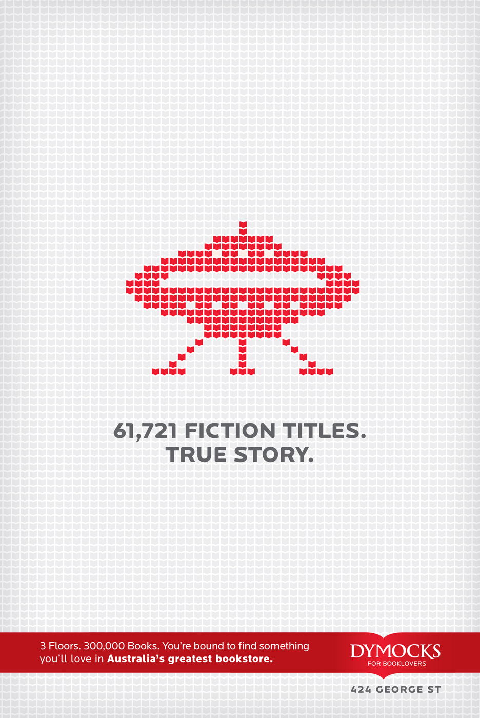 Нечего почитать? С нами такого не бывает! - утверждает DymocksDymocks - это международная книжная сеть, насчитывающая 96 магазинов в Австралии, Новой Зеландии и Гонконге, и продавшая только в прошлом году более 60 миллионов книг. Сейчас Dymocks уже признан ведущим продавцом в этой отрасли в Азиатско-Тихоокеанском регионе. А сейчас запущена новая рекламная кампания одного из магазинов сети, Dymocks 424 George Street, самого большого книжного магазина Австралии. "Тут вы всегда найдете, что почитать", - обещает австралийское креативное агентство Ideaworks в принтах созданной ими рекламы.Слоганы: 61 721 фантастических романов. Только реальные истории. Расследуйте более 7 779 криминальных историй. Впейтесь челюстями в более чем 3 019 кулинарных книг. Advertising Agency: Ideaworks, Sydney, Australia Creative Directors: Stuart Vilder, Paul Knights Assoc Creative Director: James Gali Barrow Copywriters: Stuart Vilder, Paul Knights Illustrator: James Gali Barrow Account manager: Debbie Heap |
