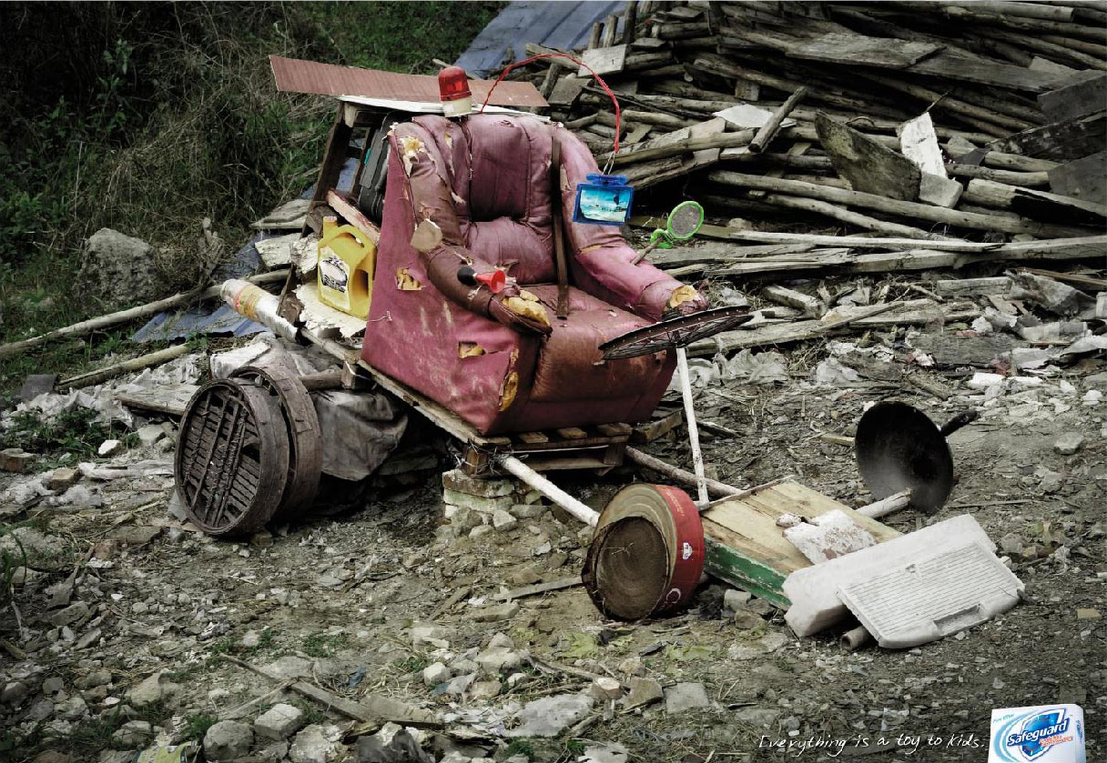 Safeguard и детиSafeguard - антибактериальное мыло от компании Procter&Gamble. Изначально оно позиционируется, как мыло для всей семьи. Однако никогда нельзя забывать, что самое важное - это позаботиться о детях, - напоминает всем P&G в новой рекламной кампании Safeguard от китайского креативного агентства Saatchi & Saatchi. Для детей все что угодно является игрушкой, поэтому всегда следите, чтобы они оставались чистыми, - говорят принты кампании.Слоган: Для детей все - игрушка. Safeguard. Advertising Agency: Saatchi & Saatchi, Guangzhou, China Chief Creative Officer: Edmund Choe, Andy Greenaway Executive Creative Director: Ng Fan Creative Director: Popo Wu, Samuel Lau Copywriter: Akon Li, Dang Lei, Arthur Tsang Advertiser's Supervisor: Todd Zhou, Victor Gong, Berty Lam, Jimeng Zhang Account Supervisor: Ann Jingco, Sherry Tan, Jane Quelch, Pully Chau Art Director: Ng Fan, Feel Fu, Jo Jong, Willyes Lam Photographer: David Chen Retouching: James Chan |