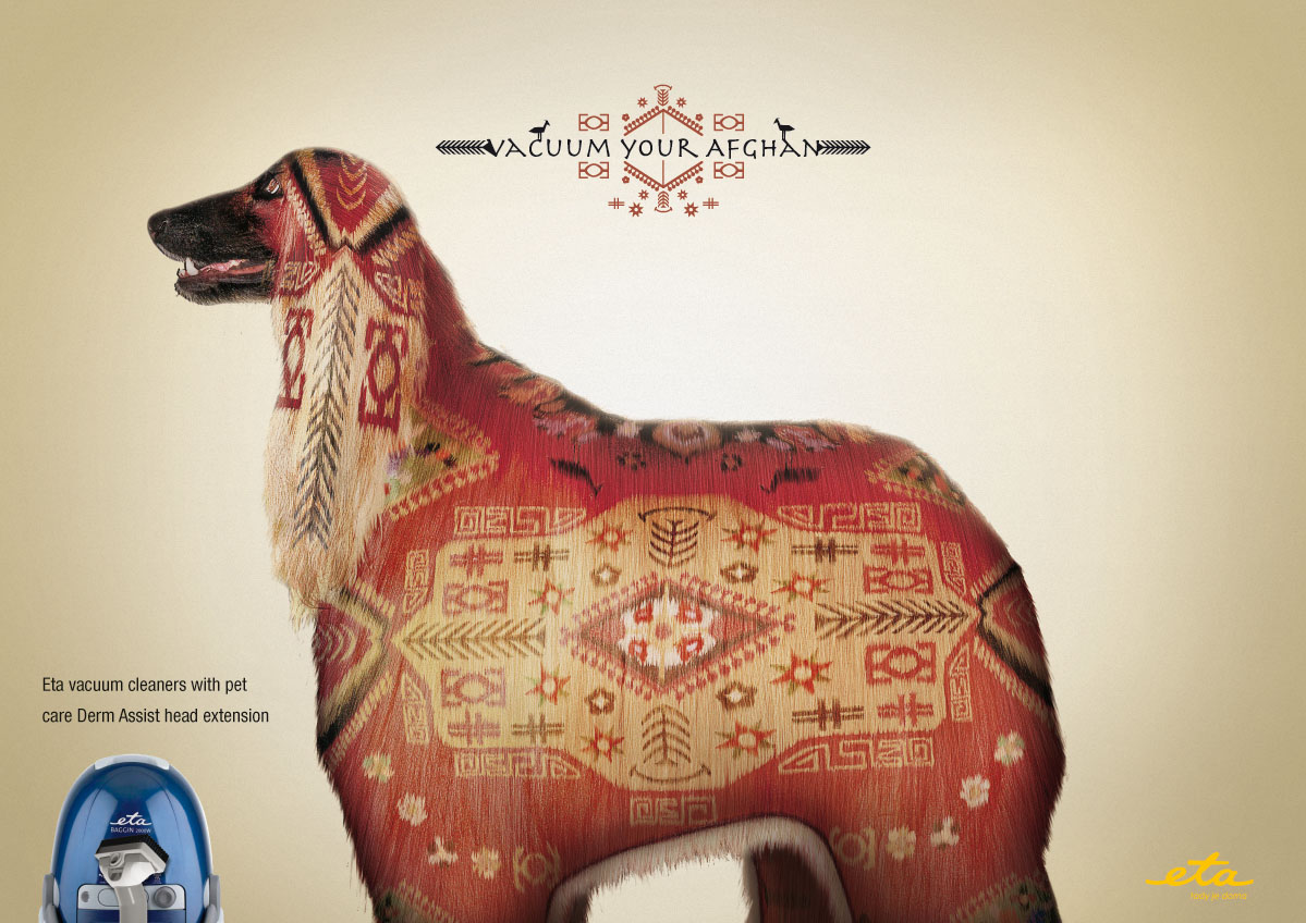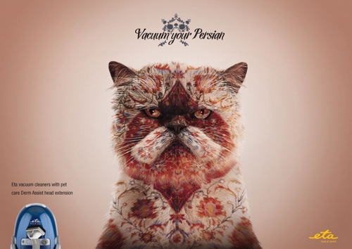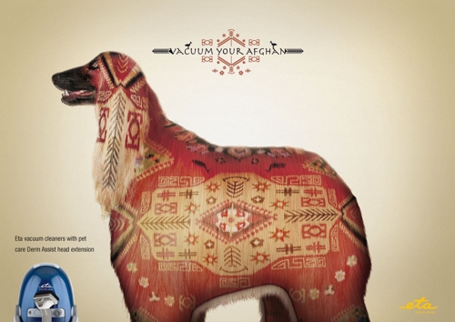 Животные как коврыМетафорическая реклама пылесосовПылесосы бренда ETA подходят не только для очистки ковров и мягкой мебели. Благодаря новой насадке их можно использовать и для того, чтобы избавиться от повсеместной шерсти домашних животных. Причем еще до того, как она окажется на полу или на диване. Новые пылесосы ETA позволяют в буквально смысле пылесосить своих домашних любимцев, без какого-либо вреда для них. Принты кампании призывают "чистить" своих животных на примере афганской борзой и персидской кошки, которые сравниваются с дорогими коврами. Состав творческой группы Advertising Agency: Kaspen/Jung v.Matt, Prague, Czech Republic Creative Director: Lester Tullett Art Director: Tomas Vesely Copywriter: Daniel Fris Illustrator: Atila Martins |