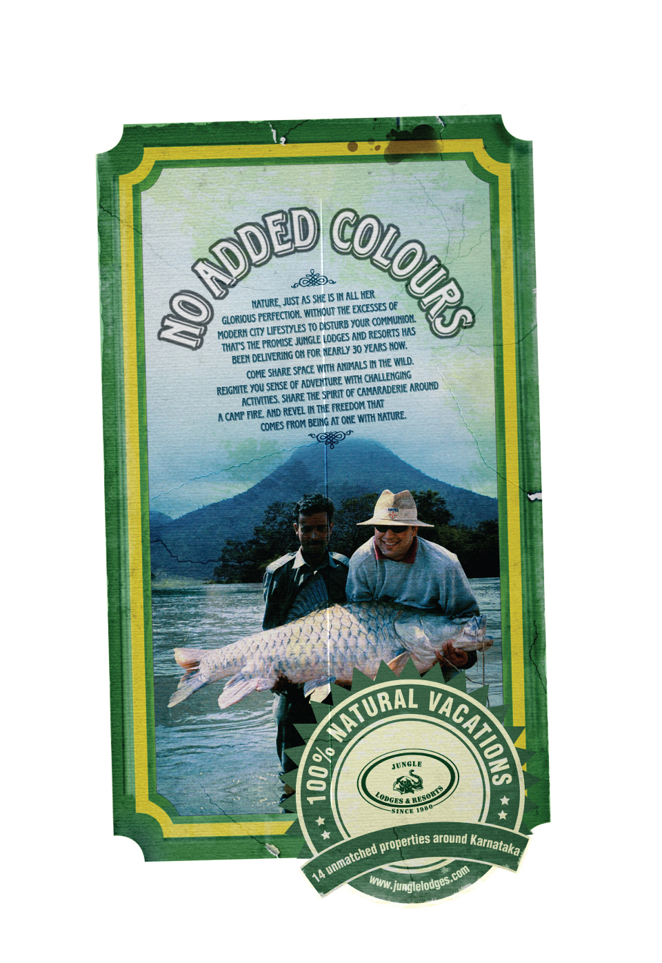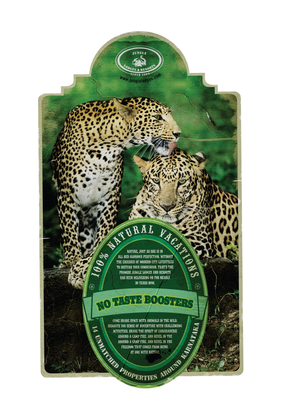 Натуральные джунглиСерия принтов для туристической компании от индийского Stark CommunicationsJungle Lodges and Resorts - это одна из первых индийский компаний, начавшая заниматься эко-туризмом 30 лет назад. Туры компании и охватывают самое сердце природы Индии в южном штате Карнатака. С момента своего основания Jungle Lodges and Resorts продвигает экологический туризм всеми возможными способами, чтобы люди были более внимательны к природе, их окружающей. Новая кампания фирмы создана, чтобы подчеркнуть уникальность отдыха на природе, который предлагает JLR. Принты выполнены в виде продуктовых этикеток, дизайн которых обращает внимание на то, что отдых Jungle Lodges and Resorts - это стопроцентно натуральный продукт. Состав творческой группы Advertising Agency: Stark Communications, Bangalore, India Art director: Santhosh K. Copywriter: Ravi |