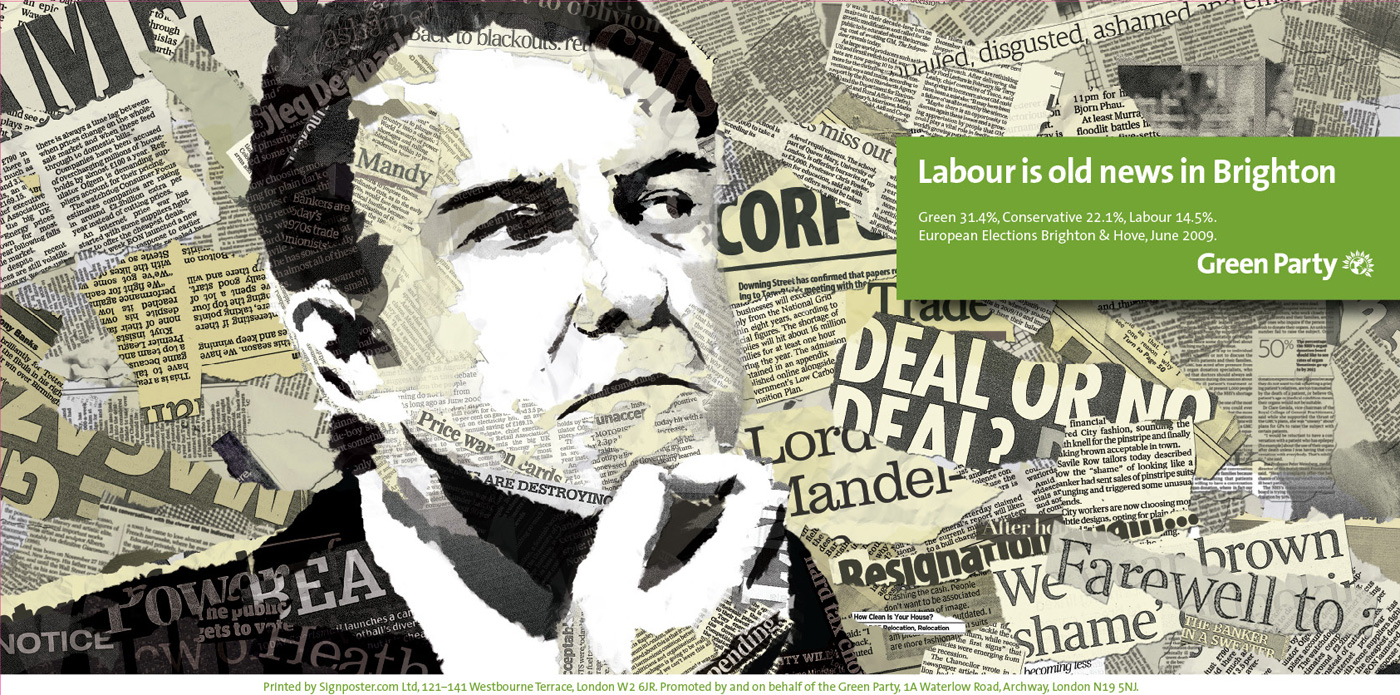 Зеленые пляшут над поверженными лейбористамиПолитическая победа по-британскиБританская Партия зеленых "Green Party" отметила свою победу на прошедших летом выборах в Европейский парламент, выпустив серию принтов, которые иначе как торжествующими назвать нельзя. Лондонское агентство Glue London разработало кампанию с лицами руководителей Лейбористской партии, которую "зеленые" почитают своим главным конкурентом. На постерах изображены Гордон Браун, Питер Мандельсон и Джек Строу, сокрушающиеся из-за результатов голосования. Чтобы победа Партии зеленых наверняка запомнилась, принты дополнены подписью "Зеленые 31,4%, Консерваторы 22,1%, Лейбористы 14,5%". Состав творческой группы Advertising Agency: Glue London, UK Executive Creative Director: Seb Royce Art Director: Dave Tokley Copywriter: Matt Gilbert |