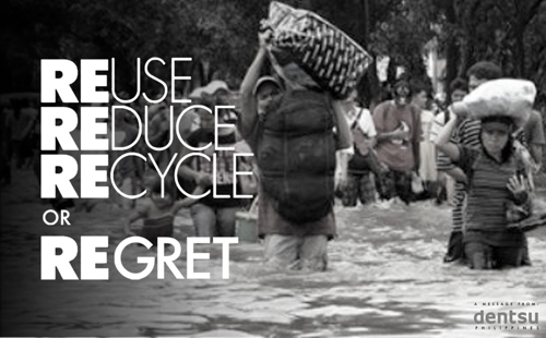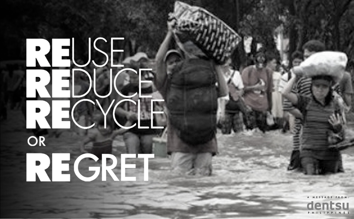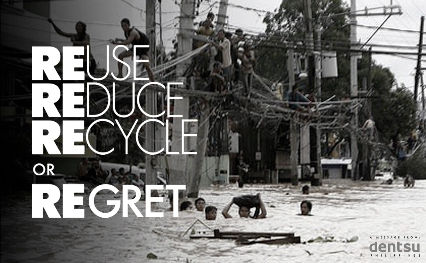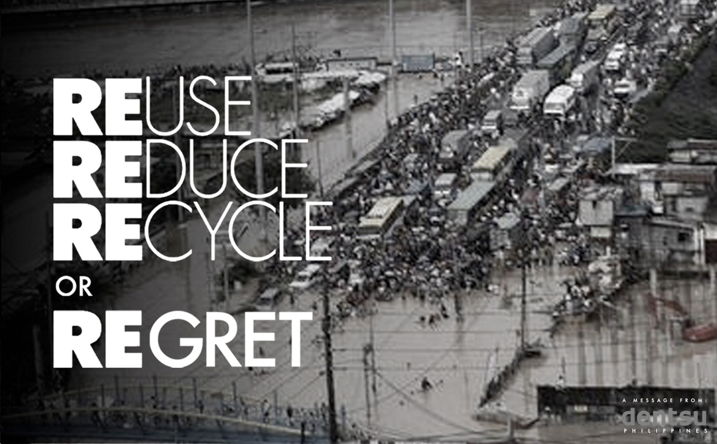 Филиппинское Dentsu предупреждаетАгентство выпустило серию принтов, напоминающих о стихийных бедствияхМанильское Dentsu создало рекламную кампанию, чтобы напомнить общественности о том, что может произойти и всегда происходит в стране во время тайфунов и ливней. Одновременно с этим креативщики решили провести параллель между стихийными наводнениями и мусорными завалами, которые образуются из-за нежелания людей перерабатывать бытовые отходы. "Повторное использование, сокращение, утилизации или сожаление. Сообщение от Dentsu Philippines", - гласит слоган. Состав творческой группы Advertising Agency: Dentsu Philippines Executive Creative Director: Mike Calaquian Art Directors: Mike Calaquian, Sandy Floria Copywriters: Mike Calaquian, Chan Delacalzada Account Managers: Joee Mendiola, Jek Innocencio |