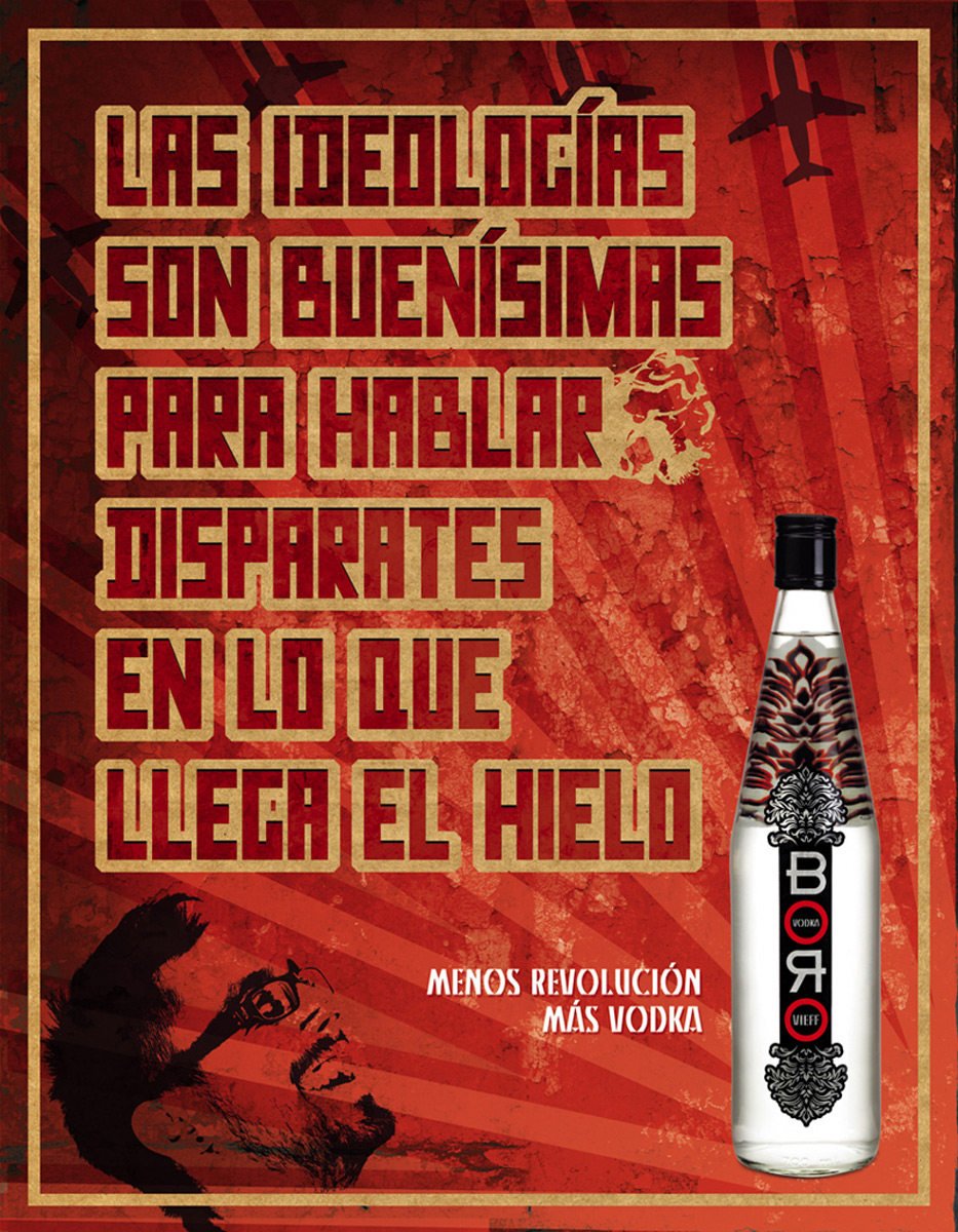 Пейте водку, а не совершайте революцииРекламная кампания водки Boro в стилистике агитплакатаДоминиканское агентство Cumbre Nazca Saatchi & Saatchi разработало серию принтов для алкогольного бренда Boro. Реклама сделана в традициях агитационных плакатов советского периода, но при этом слоган кампании - "Меньше революции, больше водки". Каждый принт посвящен своей теме: Идеология - это прекрасная тема для разговора. Чушь собачья, что лед мешает этому. Трудность с тем, чтобы держать свой кулак поднятым, состоит в том, что тяжело делать, это если заказал себе еще выпивки Это в угоду того, что бы я делал, если б восстал против всего Состав творческой группы Advertising Agency: Cumbre Nazca Saatchi & Saatchi, Santo Domingo, Dominican Republic Creative Director: Pablo Jimenez Art Director: Marisabel Lithgow Copywriter: Pablo Jimenez Illustrator: Marisabel Lithgow Published: September 2009 |