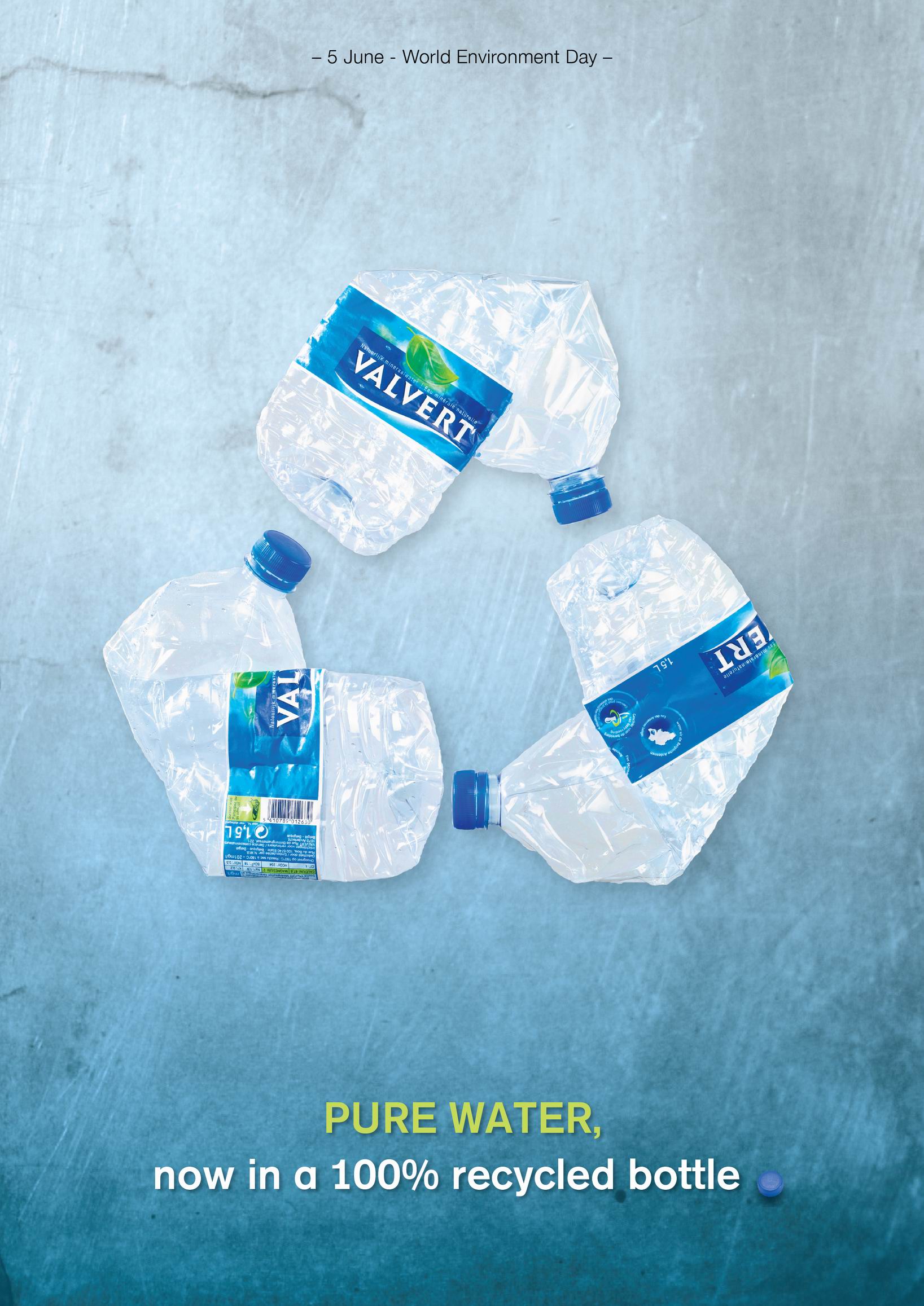 Стопроцентно перерабатываемая бутылкаРеклама минеральной воды ValvertБельгийский производитель натуральной минеральной воды Valvert, источник которой находится в незаселенной и экологически чистой части страны, с недавних пор начал выпускать свою продукцию исключительно в перерабатываемых пластиковых бутылках. Чтобы подчеркнуть такой свой вклад в дело спасения окружающей среды компания сделала рекламный принт, отражающий экологичность новой тары. Смятые бутылки на нем формируют повсеместно известный значок повторной переработки. Состав творческой группы Title: Recycled Bottles Brand: Valvert Category: Top Topical Art Director: Batist Vermeulen Copywriter: Robbie Cam |