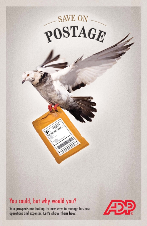 ADP научит экономитьКанадская аутсорсинговая компания предлагает не бросать деньги на ветерКанадская фирма Automatic Data Processing или ADP является одним из крупнейших мировых поставщиков деловой аутсорсинговых решений для бизнеса. Благодаря своему почти шестидесятилетнему опыту ADP позволяет компаниям значительно улучшить организацию труда и управление бизнесом и сэкономить таким образом на различных расходах. Так новая серия принтов от канадского агентства Brainstorm Group рассказывает, что благодаря простым и действенным решениям ADP можно сэкономить на электричестве, кондиционировании и почтовых перевозках. Состав творческой группы Advertising Agency: Brainstorm Group, Toronto, Canada Creative Director: Joe Suskin Art Director: Alek von Felkerzam Copywriter: Jerry Brens Illustrator: Sam Robbins |