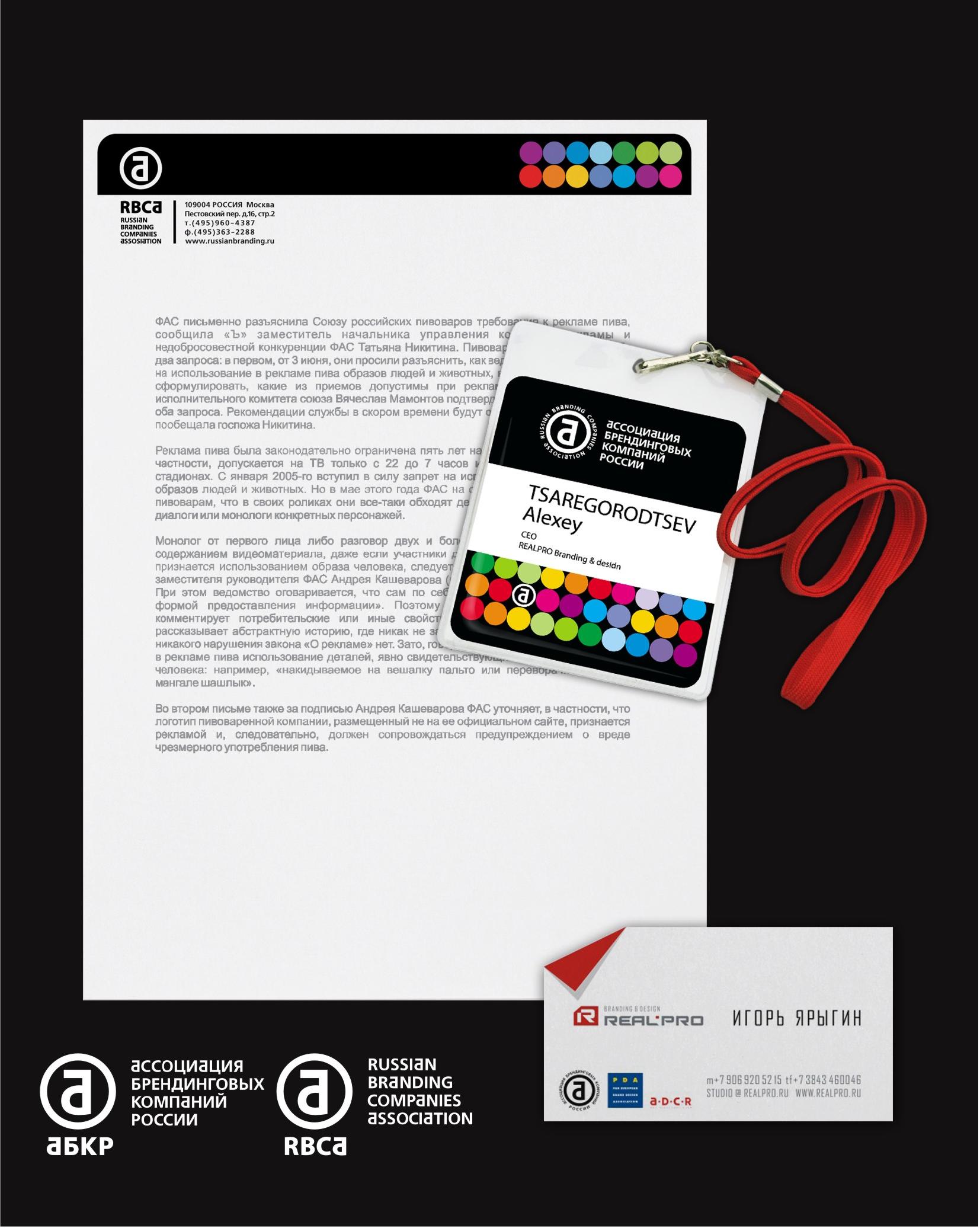 Фирменный стиль для Ассоциации Брендинговых Компаний РоссииКомпания REALPRO, член Совета АБКР, разработала логотип и систему визуальной идентификации ассоциации.