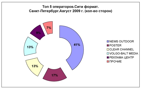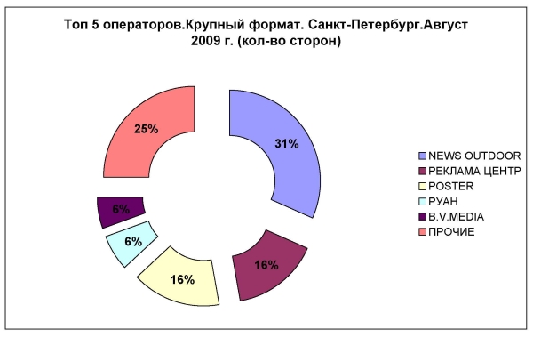 Летом рекламных поверхностей для "наружки" стало чуть меньшеИсследовательская компания «ЭСПАР-Аналитик» представляет данные по петербургскому рынку наружной рекламы за летний период этого года. С июня по август произошло некоторое сокращения количества сторон, что в принципе в последние годы было нетипично для данного рынка, который рос в основном за счет замены статических конструкций динамическими. В июне этого года в городе было 22400 поверхностей, а к августу осталось 22025. Под сокращение попали в основном пиллары (конструкции формата 3х1,4), установленные компание News Outdoor буквально перед началом кризиса. Лидером в сегменте пилларов по-прежнему остается компания Clear Channel. News Outdoor, в свою очередь, не сдает ведущие позиции в сегменте сити- и крупных форматов, щитов 3х6.