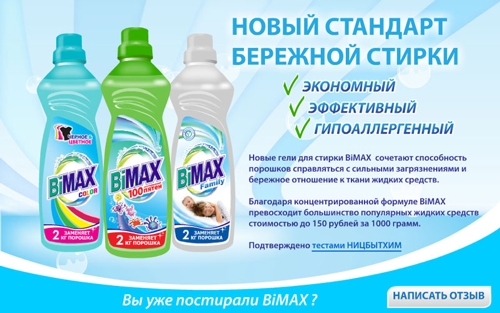 "Нэфис" обновил гели BiMAXКомпания "Нэфис Косметикс", крупнейший национальный производитель моющих и чистящих средств, завершила перезапуск гелей для стирки BiMAX. В результате данного проекта ежемесячные отгрузки этой продукции за полгода выросли в 15 раз.Перезапуск гелей BiMAX стартовал весной этого года. В его рамках продукт обновился и внешне, и внутренне: был изменен дизайн упаковки и улучшена рецептура. Теперь благодаря новой концентрированной формуле 1 кг геля BiMAX заменяет 2 кг стирального порошка. Обновленная линейка гелей BiMAX включает 3 позиции, доступные в форматах 500 и 1000 граммов. Позиция "Color" предназначена для стирки цветных и черных вещей; "Family" подойдет для всей семьи, в т.ч. для стирки детской одежды и белья. Позиция "100 пятен" - это гель-универсал, способный отстирать даже сложные пятна. Завершающим этапом проекта стал запуск сайта, посвященного жидкому BiMAX, - www.100pyaten.net. Адрес сайта потребители могут найти на упаковке продукта и POS-материалах. С помощью нового Интернет-ресурса каждый потребитель может оставить свой отзыв о продукции, который обязательно будет учтен производителем. Кроме того, на сайте размещены результаты тестирования гелей для стирки, проведенные независимым исследовательским центром "НИЦБЫТХИМ". По словам бренд-менеджера "Нэфис Косметикс" Никиты Гладкого, перезапуск гелей BiMAX позволил компании полноценно выйти на рынок жидких средств для стирки: "Мы считаем этот рынок крайне перспективным. Культура использования жидких средств для стирки в России растет, приближаясь к западным стандартам. В Европе этот сегмент занимает треть всего ассортимента средств для стирки, в США - почти 90 процентов. Именно поэтому, повысив качество продукта, мы не только не стали повышать на него цену, но и несколько снизили ее". |