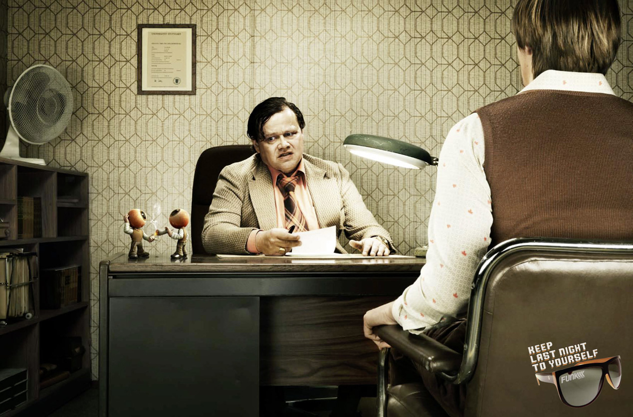 Funk призывает прятать глазаСмешная рекламная кампания солнцезащитных очковСлоган новой кампании очков Funk от агентства DDB Berlin призывает "оставить прошлый вечер для себя". Принты изображают людей, глаза которых выдают их вчерашние приключения. При этом сами они показаны со спины, но выражения лиц более чем красноречивы. Для пущего эффекта художник изобразил "грешки" прошлой ночи в виде двух глаз, которые пьют, курят марихуану и даже, так сказать, морально разлагаются. Кампания перекликается с прошлогодней серией принтов того же DDB Berlin со слоганом "Никто не должен знать, что вы делали прошлой ночью". Состав творческой группы Advertising Agency: DDB Berlin, Germany Chief Creative Officer: Amir Kassaei Executive Creative Directors: Stefan Schulte, Bert Peulecke Creative Directors: Johannes Hicks, Till Eckel Copywriters: Ricardo Wolff, Marian Goetz Art Director: Gabriel Mattar Photographer: Hans Starck |